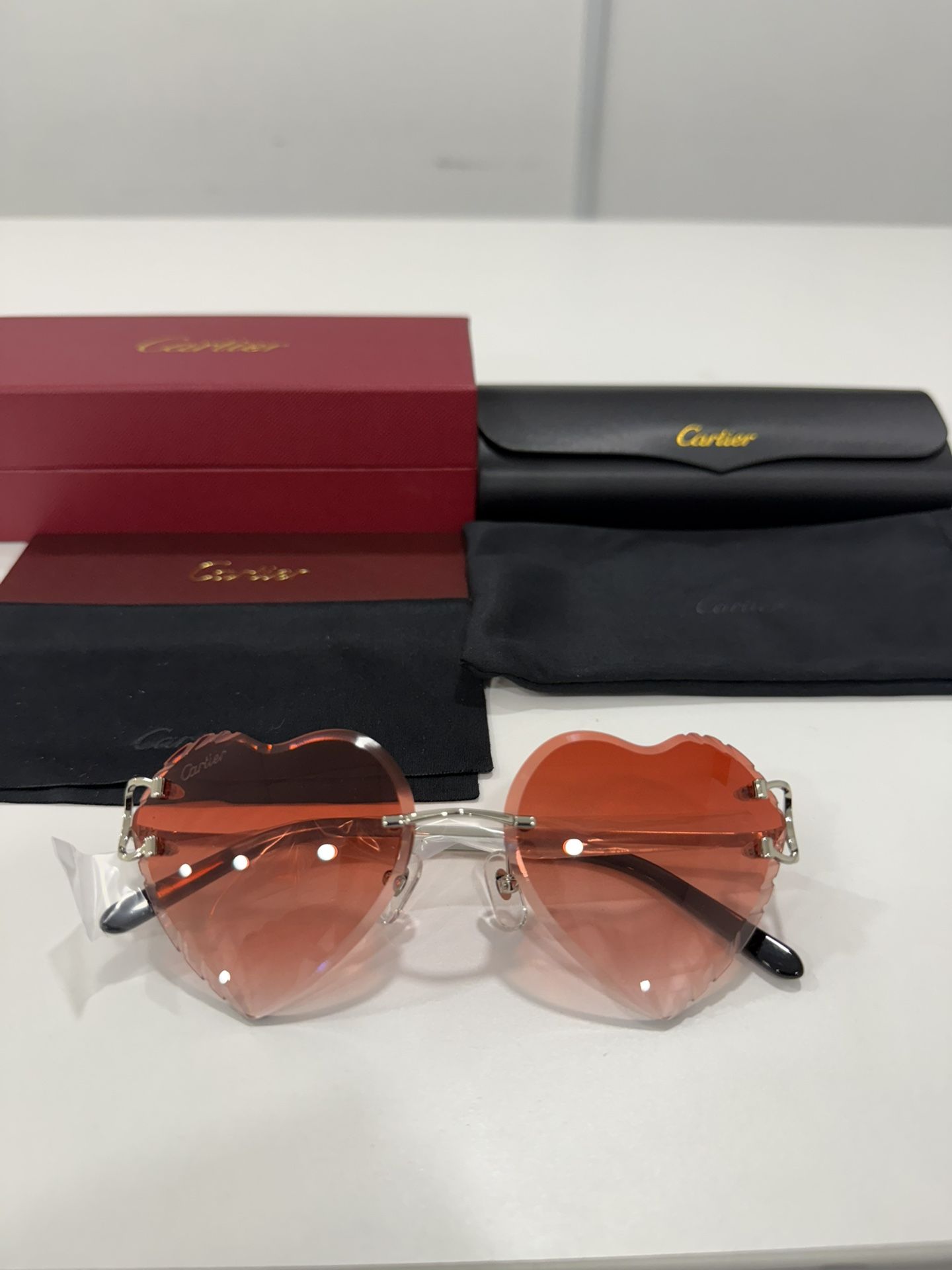 Cartier Glasses Red Heart (Diamond cut) Silver Frame