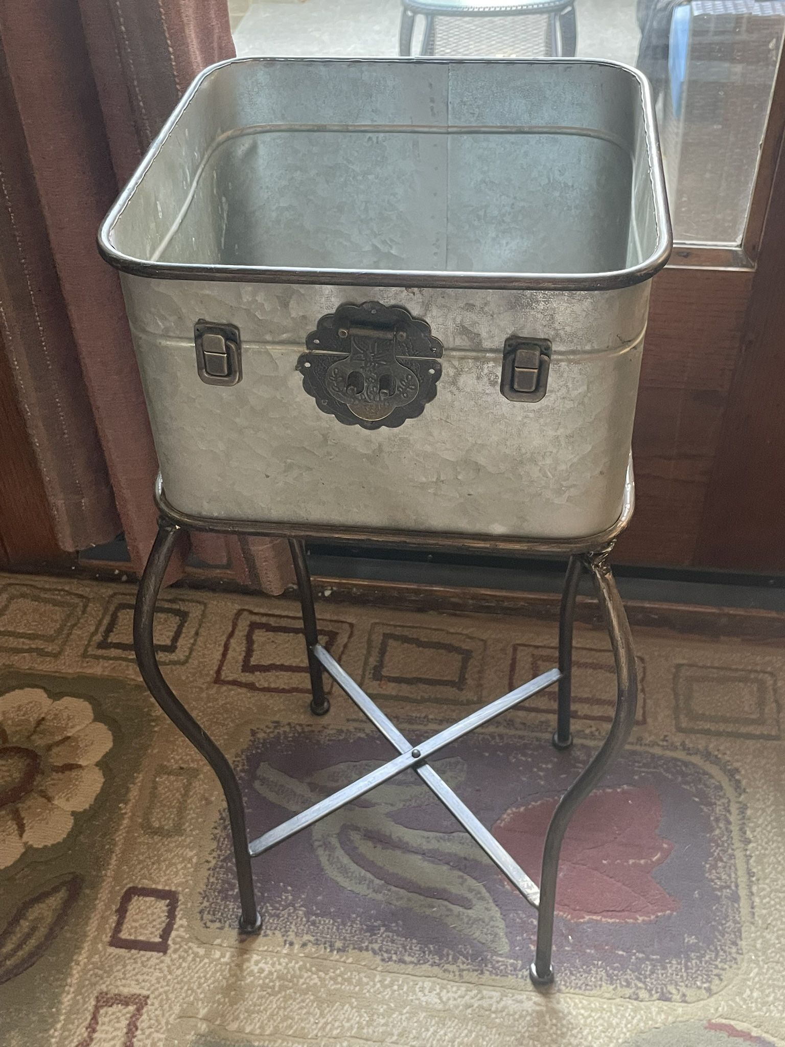 Galvanized Metal Suitcase Planter 27.5” H x 13” W x 13” D. Inside area 11 1/4” W x 7” H. Great Clean Condition. Habla Espanol