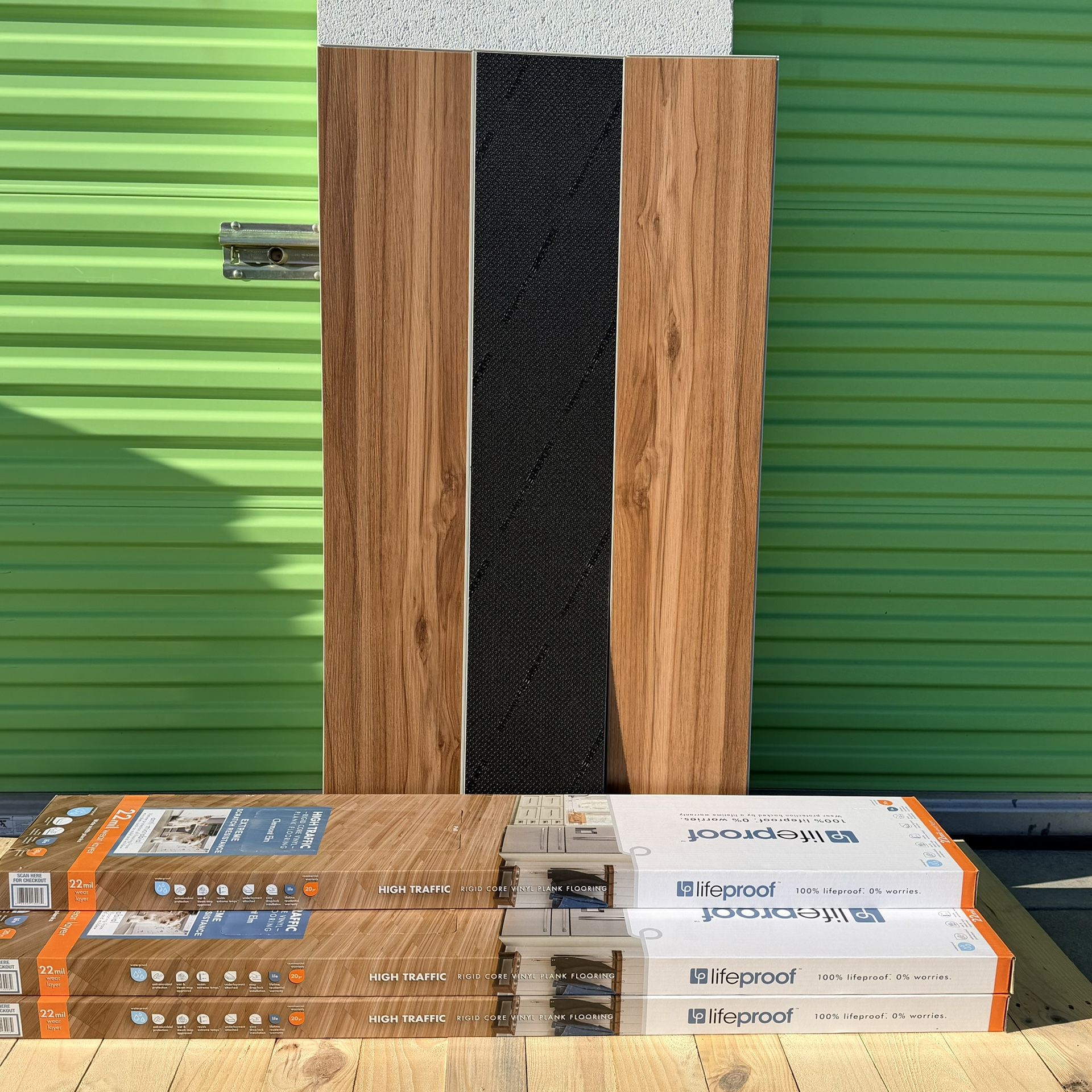 Lifeproof Clermont Elm waterproof vinyl plank flooring. Underlayment attached with easy click-lock installation. Each case covers 20.06 sq ft. Brand new, sealed boxes. $40 a box Modern light-wood look, durable, and perfect for any room or remodel. Message for pickup.