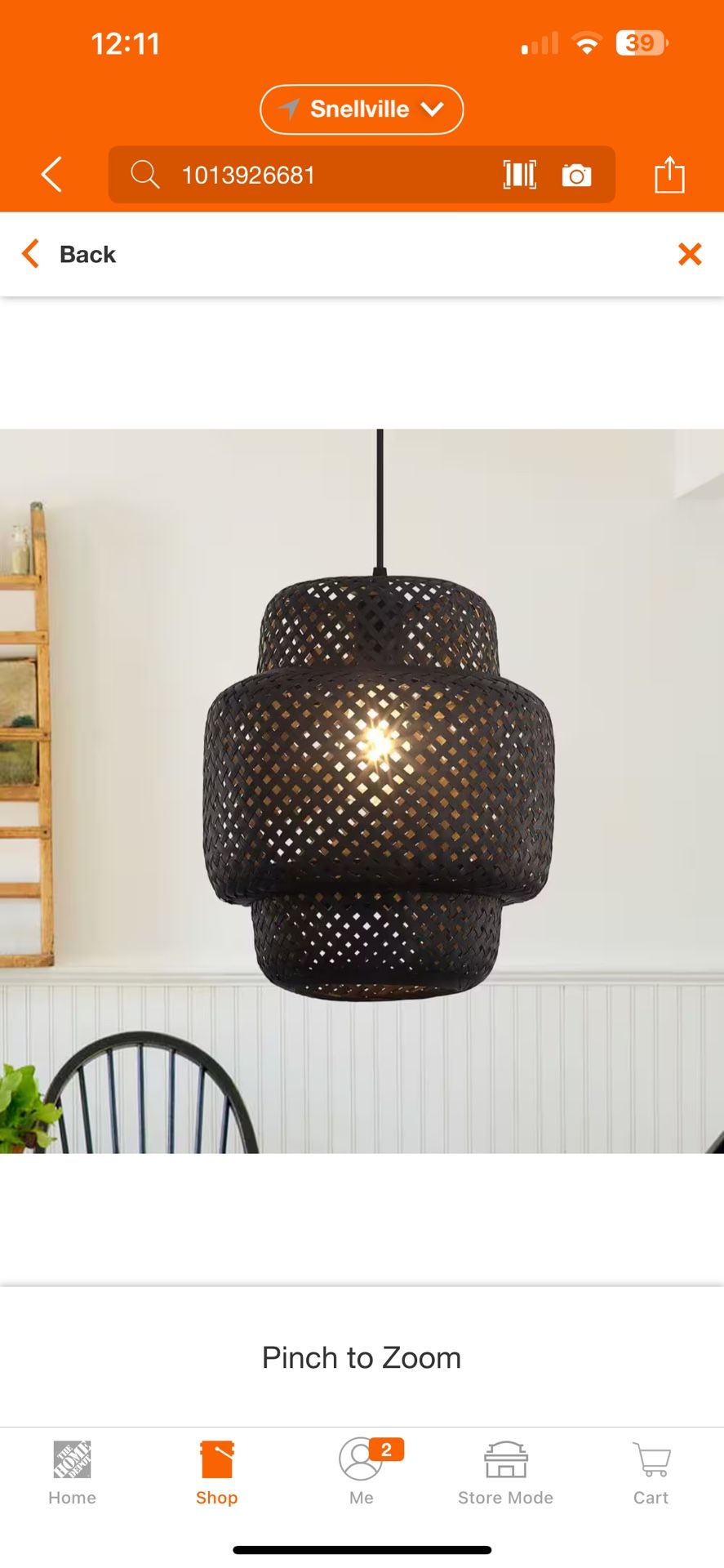 11.8 in. 1-Light Black Geometric Pendant Light with Hand-Woven Bamboo Shade for Kitchen Island Restaurant Bar Foyer