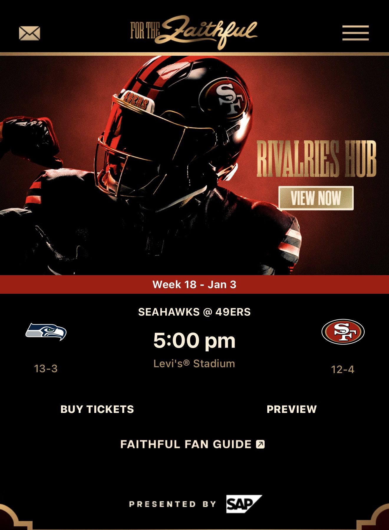 I am season ticket holder: I have 2 tickets for Saturday’s game: 49ers vs Sea Date: 1/3/26 Section 402 Firm Price $350 each or $650 both (Great price much more online + fees)