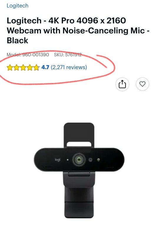 Logitech Brio 4K Pro Webcam, perfect for streaming, video conferencing, and content creation. This webcam delivers exceptional video quality with 4K Ultra HD resolution. It's in new, unopened condition, sealed in its original box. Ideal for professionals and enthusiasts seeking a high-performance webcam. Part number V-U0040.