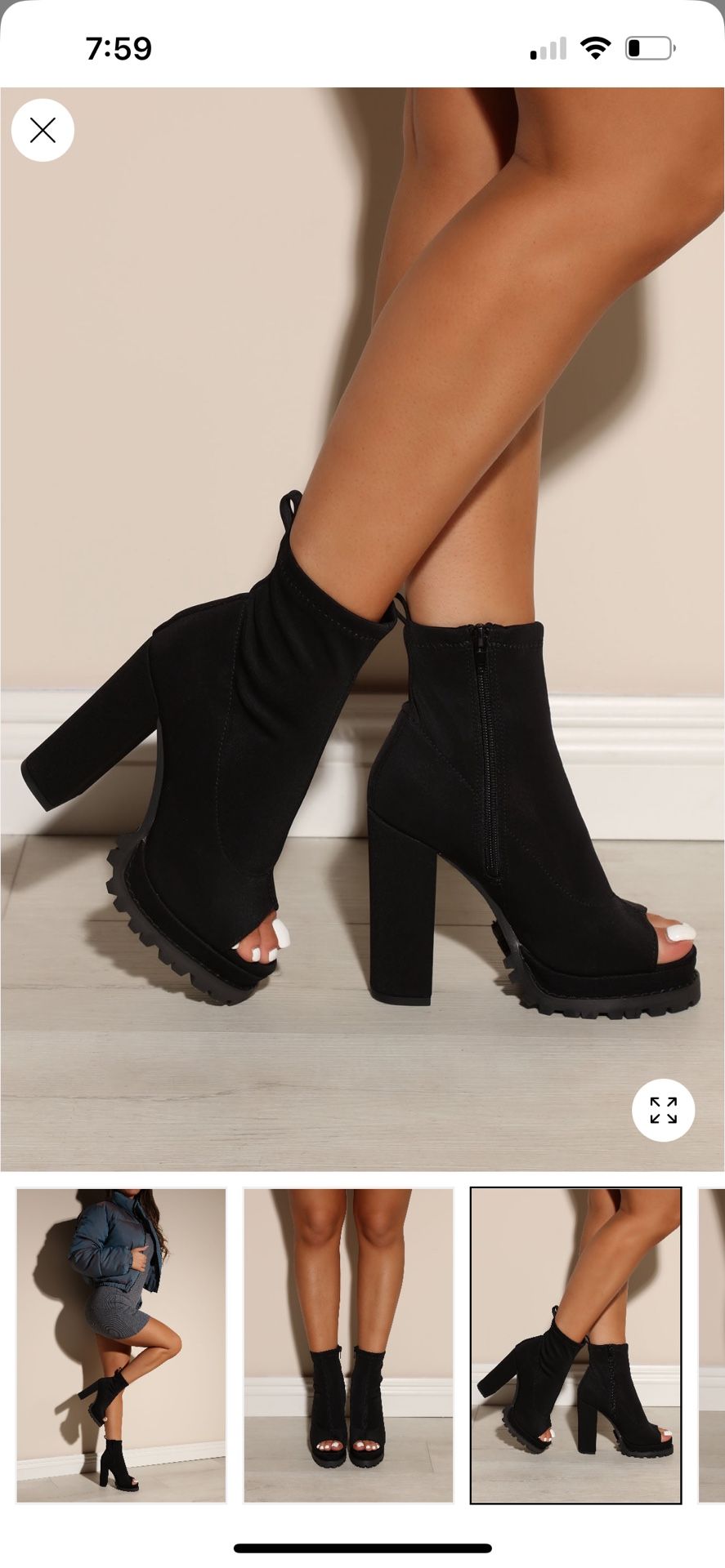 Pick up only - Chandler/Gilbert area New Fashion nova booties - worn 1x (no box) Size 9 Fashion nova, boots, booties, open toed, women, women’s, juniors, new, worn once, must go, sale, FN, black, heels, brand new, night out, last minute shoes, shoes, Xmas, Xmas fit, Xmas gift