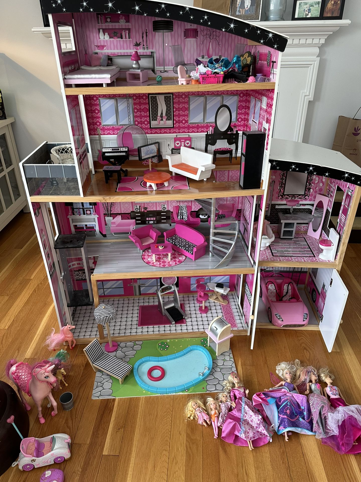 Large dollhouse with Barbie’s and accessories as pictured. Pickup in Bethesda MD