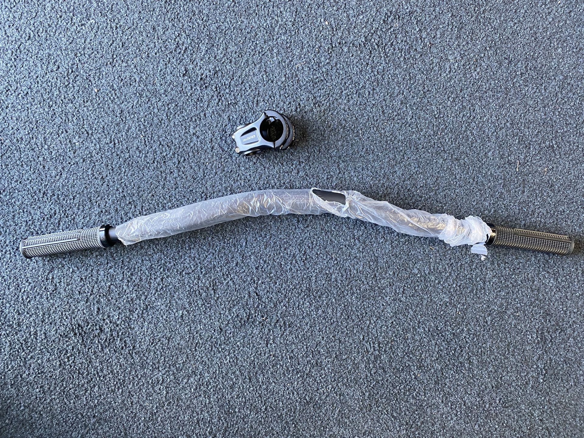 Brand New Santa Cruz e35 Carbon Fiber Handlebar with optional routing for eBike controller cable to hide the cord. Burgtec Enduro MK3 Stem - 42mm “We don’t just use carbon to build bars because it looks cool and everyone is doing it. We pioneer advanced materials and production methods to build the most durable and high-performance products because it’s the way to ensure that riders can just enjoy riding their bike. Our latest bars feature an oval-shaped profile to add increased strength while improving vertical compliance. All this to say, they'll keep your hands feeling fresh after charging down the most brain-chattering of descents. We've even added internal routing to our E-Carbon Bars to keep those pesky wires out of your way.”