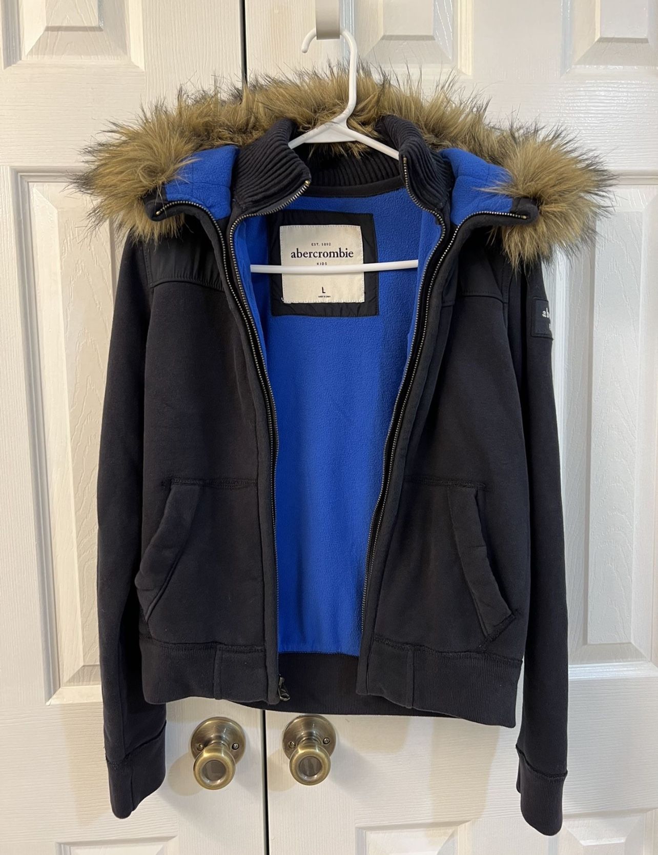 Excellent Condition! Abercrombie Kids Boys Faux Shearling Fur Sweatshirt Hoodie Size L (10)