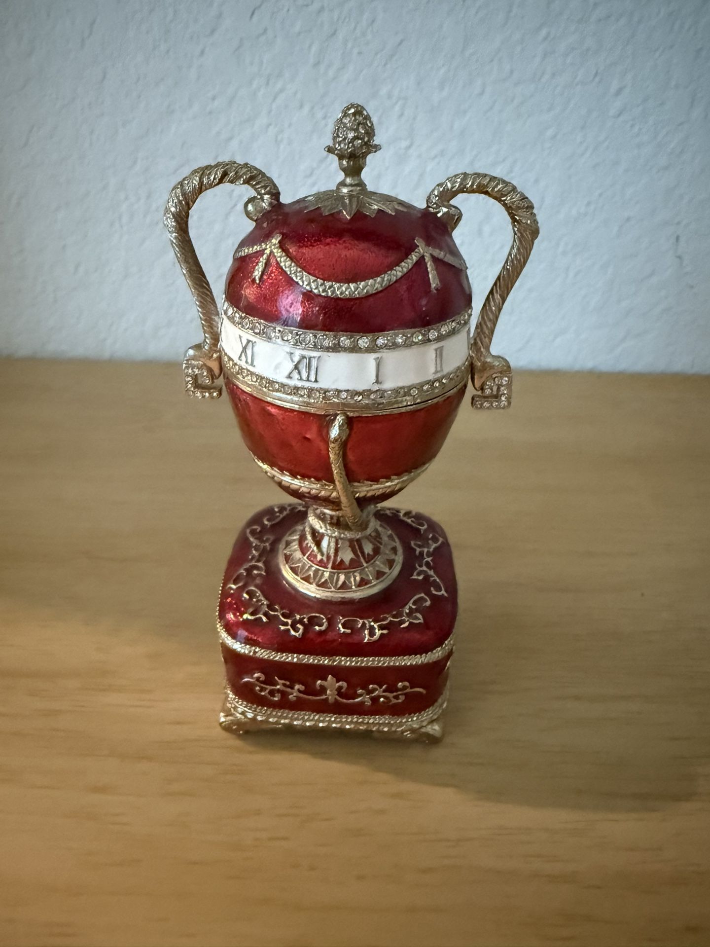 Russian Faberge Egg. Trinket Jewelry Box. Music Box, Red, Vintage, About 5”