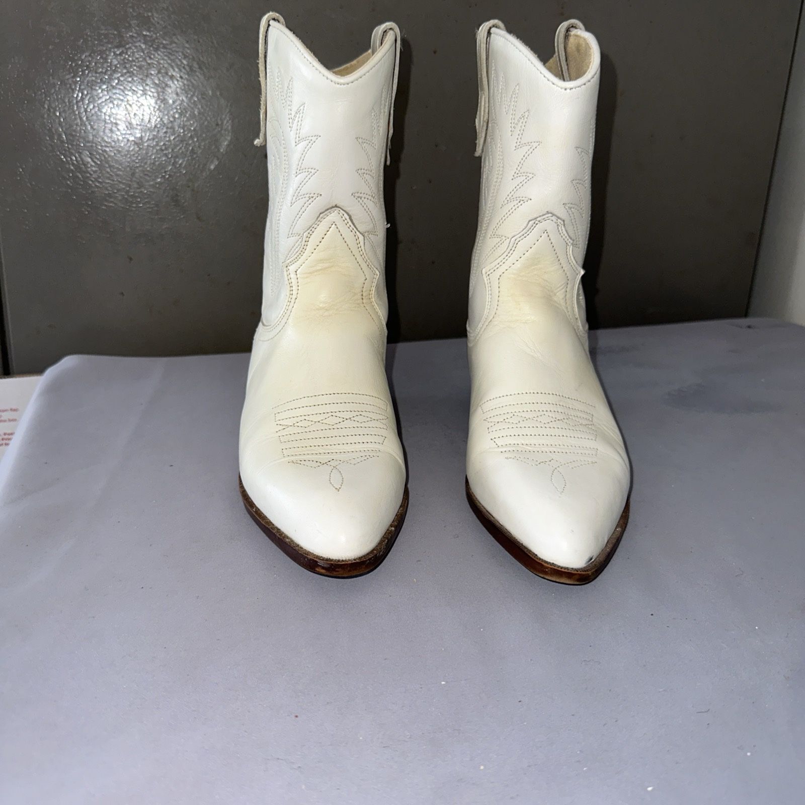 Westies Vintage white leather Cowboy Boots with a western vibe Cream Women's Size 7.5