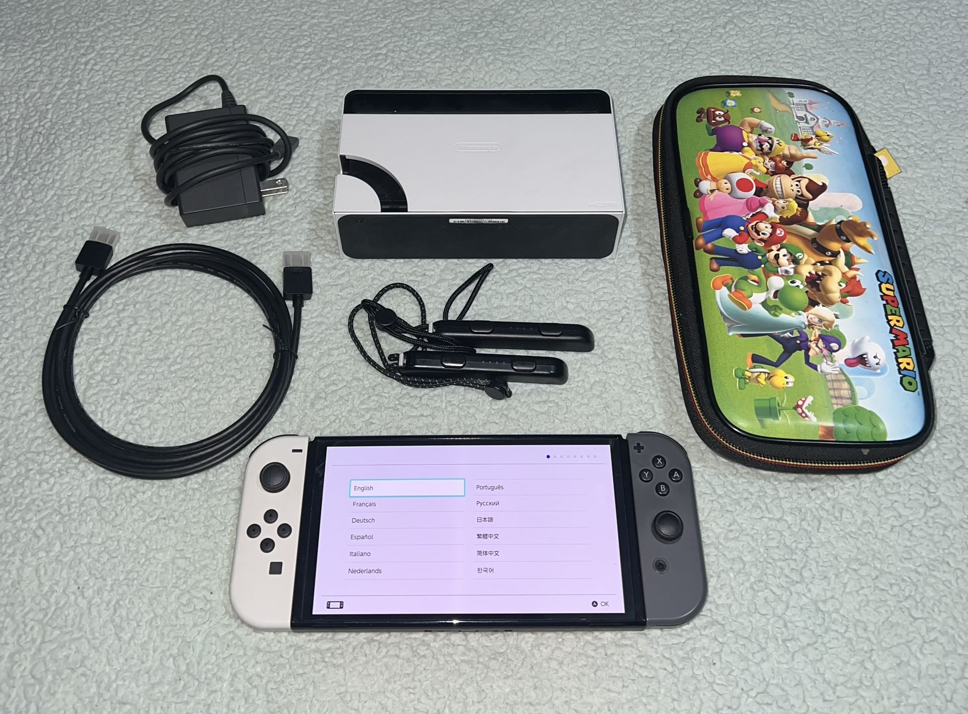 $200 - Selling this Nintendo Switch OLED. Excellent conditions, works like new. More than welcome to come see and test it. FIRM ON PRICE. NO TRADES. Comes with Stock Accessories: *Nintendo Switch OLED (no box) *White/Black Joy-Cons (no stick drift, can test) *TV Gameplay Dock/Charger/HDMI Cable *2 Wrist Straps *Nintendo Switch Carrying Case *Screen Protector on Screen