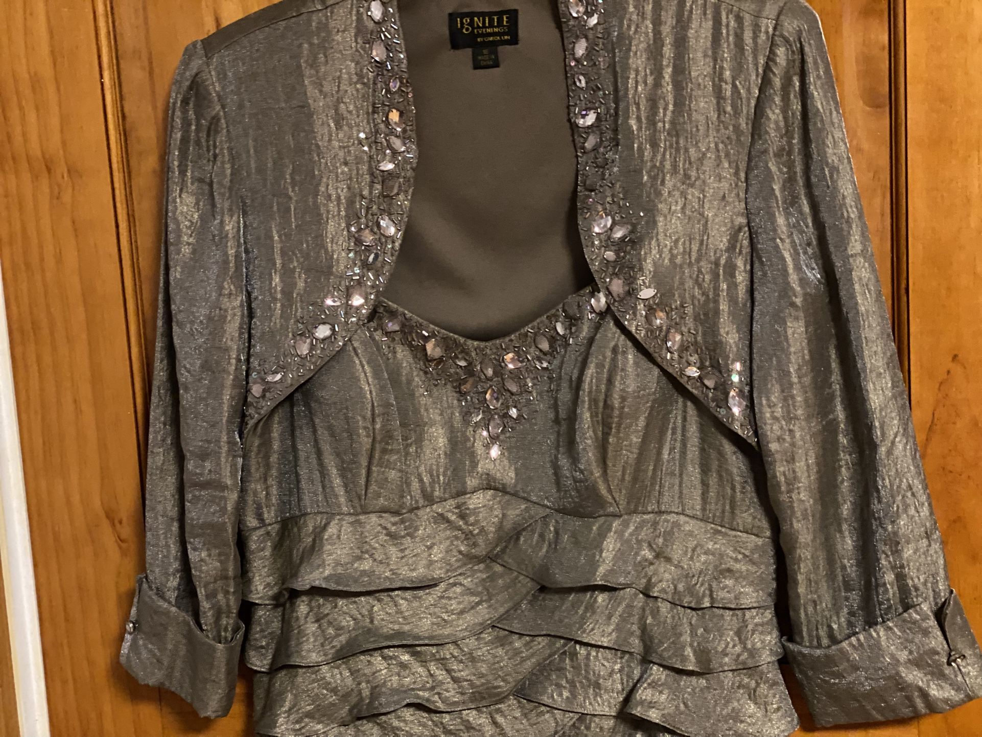 Long, Eloquent t-strap dress With Bolero Jacket, Size 16