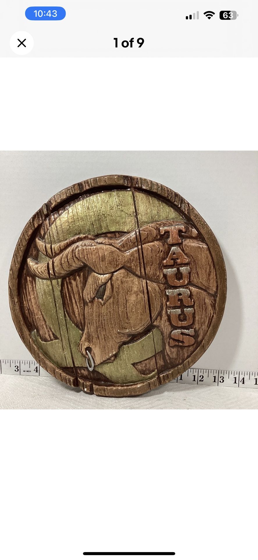 Vintage Taurus Zodiac Ceramic Plaster Wall Art Handmade 1983Horoscope Folk Art