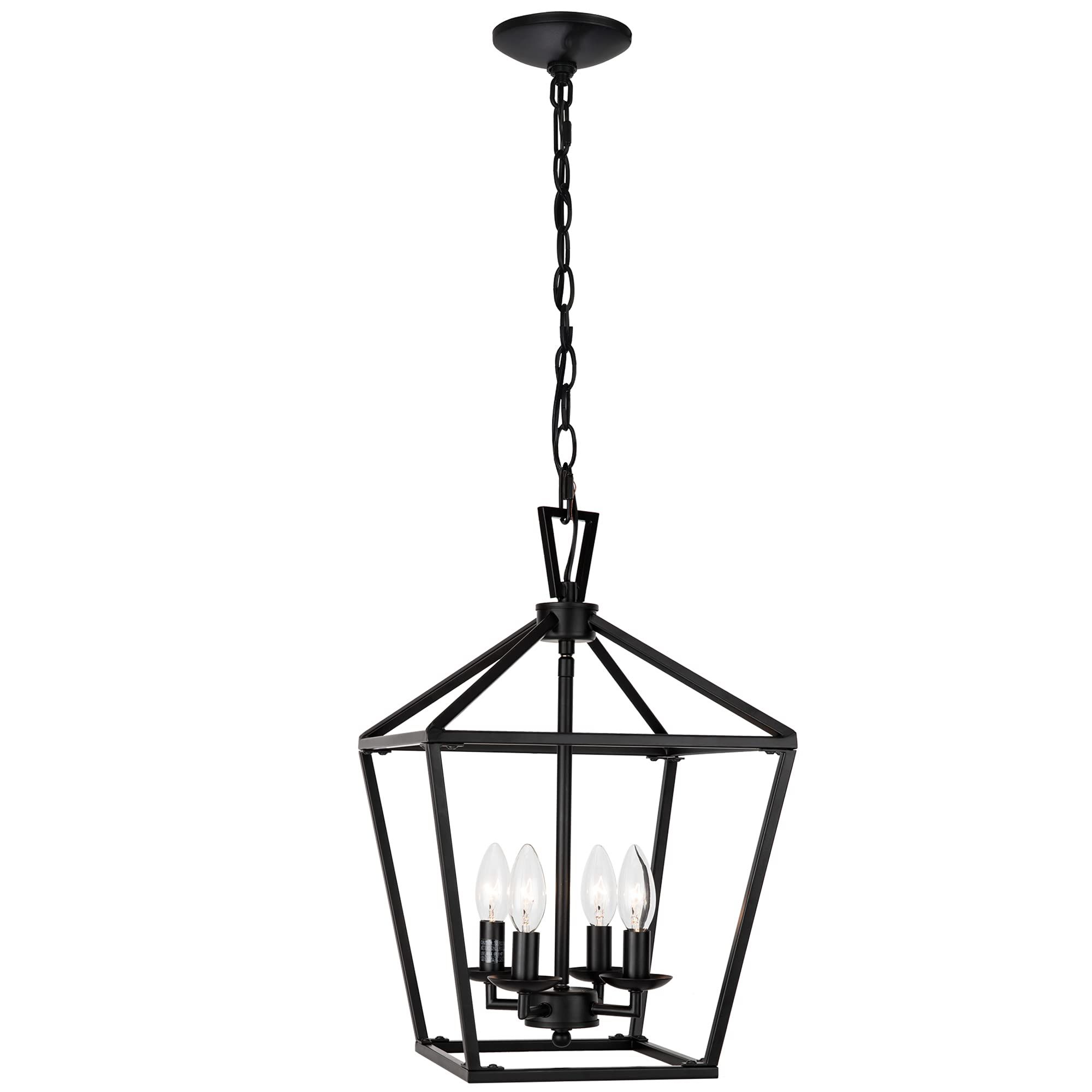 Untrammelife 4-Light Black Lantern Pendant Light, Adjustable Height Square Cage Pendant Hanging Lighting Fixture 11’’ Rustic Lantern Chandelier For Dining Room Kitchen Island Foyer