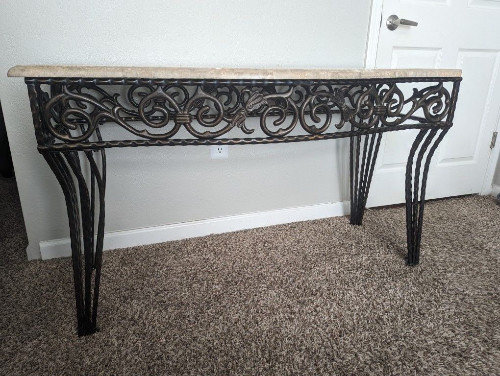 Must Pickup, need gone TODAY, willing to negotiate price Two eclectic tables for sale with matching aesthetics, one hallway table and one coffee table. Chipped corner on table but we stall have the piece to glue back on