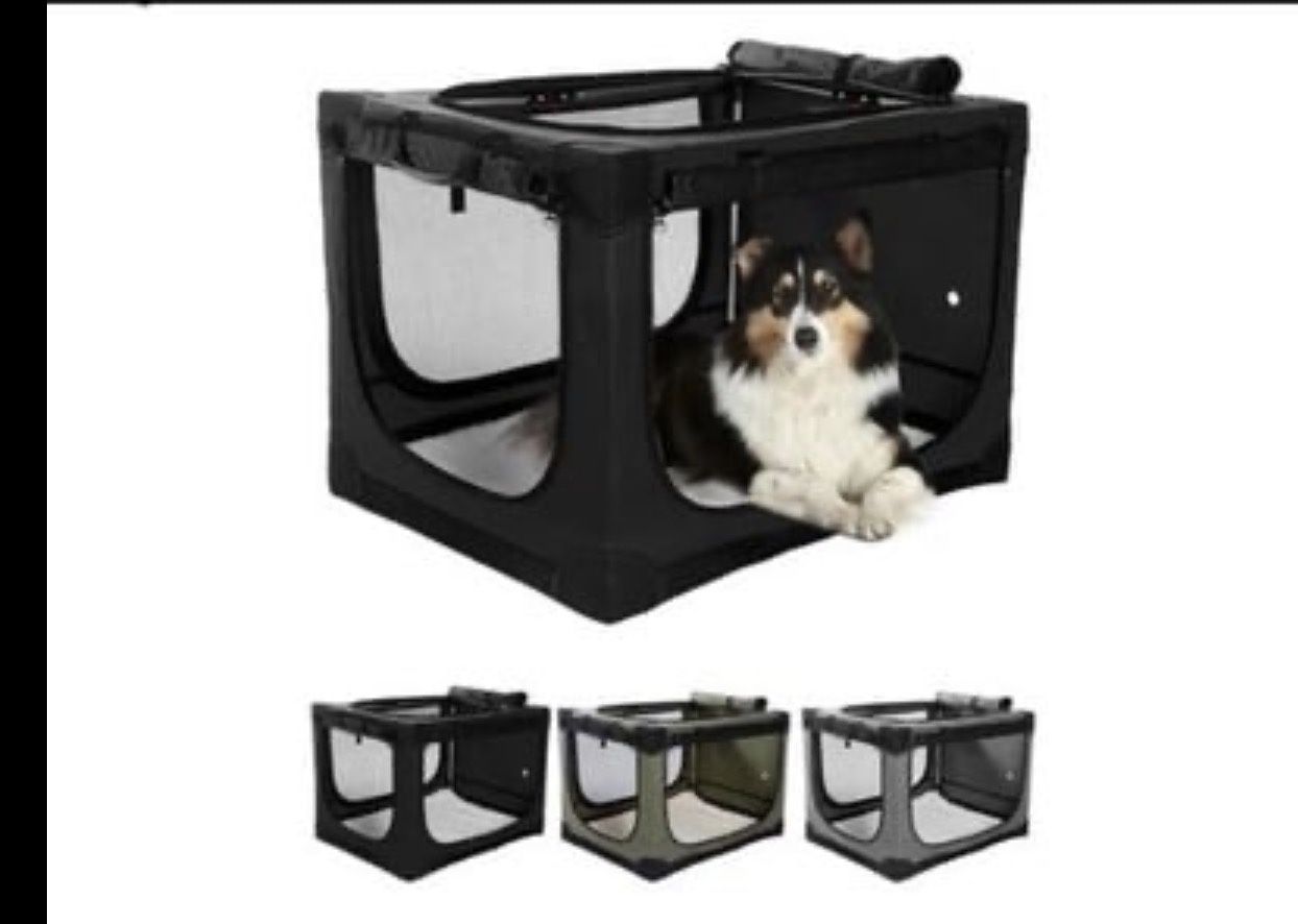 New. 24 Inch Collapsible Travel Dog Crate for Medium Large Dogs, Portable Dog Crate 4-Door Foldable Soft Kennel with Durable Mesh Windows for Indoor & Outdoor Travel, with Storage Bag, Black