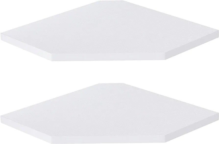 Details MaterialEngineered Wood Mounting TypeWall Mount Room TypeBathroom, Kitchen, Living Room, Bedroom Shelf TypeEngineered Wood Number of Shelves2 Special FeatureCord hole, Geometric Product Dimensions10.4"D x 16.5"W x 0.7"H ShapeDiamond StyleRustic Age Range (Description)Adult About this item 【Modern & Elegant Style】Transform your corner into a functional and sophisticated display area using our charming Set of 2 Wooden Corner Shelf Wall Mounts! These corner shelves expand your storage space and keep your trinkets. They are perfect for showcasing your favorite photos, CDs, collectibles, and plants, and work seamlessly in living rooms, bedrooms, studies, and hallways. 【Sturdy Corner Floating Shelves】 Our Set of 2 Wooden Corner Shelf Wall Mounts are crafted with premium quality, heavy-duty composite wood making them incredibly durable, mildly waterproof, easy to wipe clean, and environmentally friendly. These corner shelves have been designed to withstand high weight-bearing capacity and can support up to 22 pounds for each tier, making them the perfect solution for all your storage needs. 【Enjoy the Quality】Our Corner Shelves Wall Mount features an impressive imitation wood grain finish that brings a touch of natural atmosphere and beauty. This rustic design is perfect for reminiscing on traditional country life and creating a cozy ambiance in your home. With a versatile wood color that is easy to match and clean, these corner shelves are suitable for a wide range of decor styles. 【Multi-Purpose Wall Shelves】 The Corner Floating Shelves Wall Mount are not only stylish, but also incredibly versatile. Whether it's in the bedroom, living room, corridor, these shelves are perfect for displaying small plants, photos, collectibles, or other decorative items in the corners of your home. Additionally, our corner shelves are perfect for use in the kitchen, where they work exceptionally well as a handy spot to place your seasoning bottles or other cooking essentials. 【Easy to Mount】The package comes with user-friendly instructions and all the necessary mounting hardware. Just place the corner wall shelf level in your desired location and secure it in place using the hidden bracket connectors provided, followed by screws.
