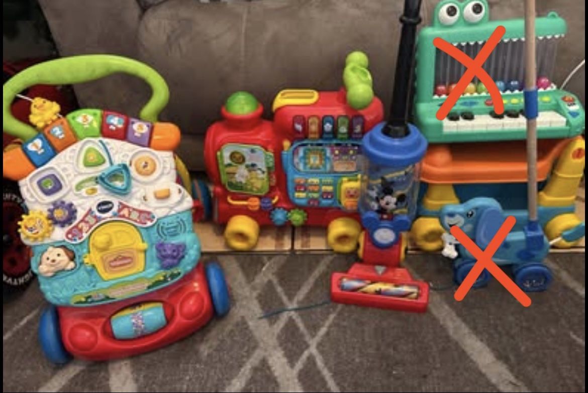 Mickey Mouse vacuum (brand new) - $20 Train - $20 Activity walker - $10 OR TAKE ALL FOR $30