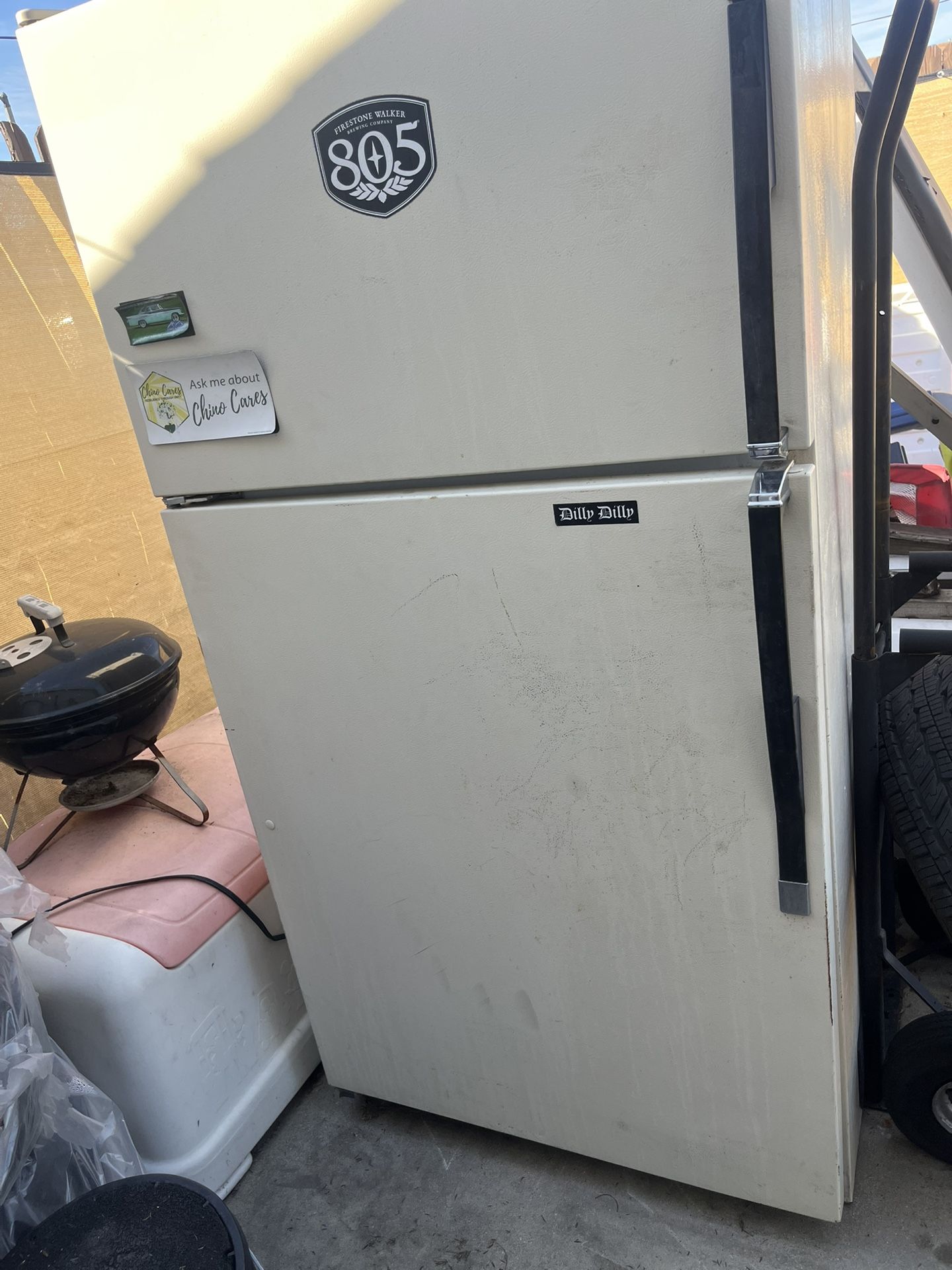 I have an older model large refrigerator for sale. It works good only thing is o keep a chair leaning on the refrigeration side because part of the top right magnetic magnet is not working all the way. So to keep it sealed tight I just lean something against it. The freezer works well no issues.