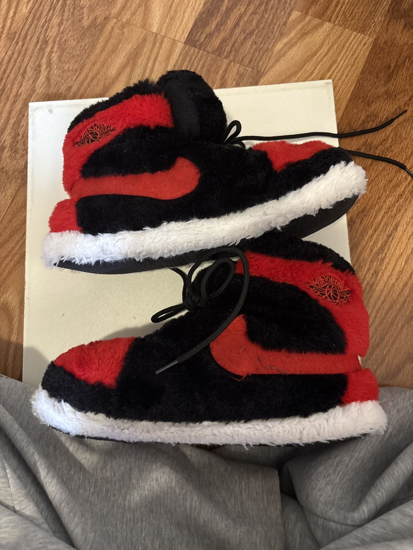 Red and black Jordan 1 slippers