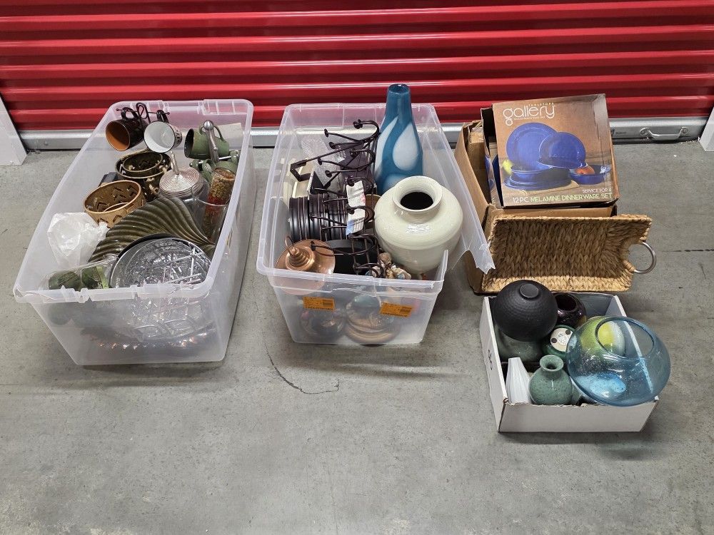 - Huge mega size (3) boxes of household kitchen and Decorative items in a bundle Package deal. - Kitchen items includes, plate sets, bowls, dishes, plate and cup sets, vase and Decorative items, over 100+ pcs in total, mostly in brand new and excellent condition. - See all photos for details of items - Also excellent for swap meet or resale. *** Package deal for all $60. ***