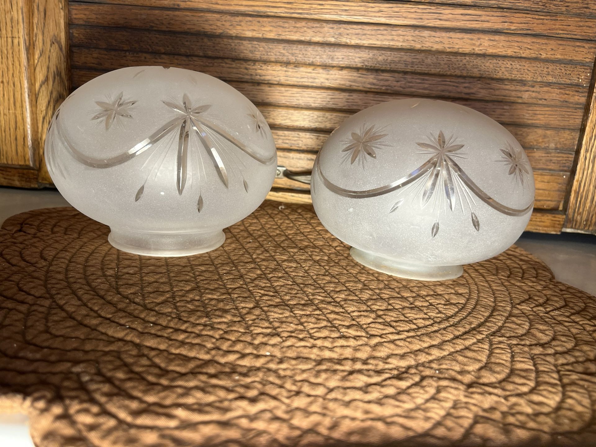 Two Vintage 6” Glass Globes, Similar Frosted Glass & Design. Selling Together.