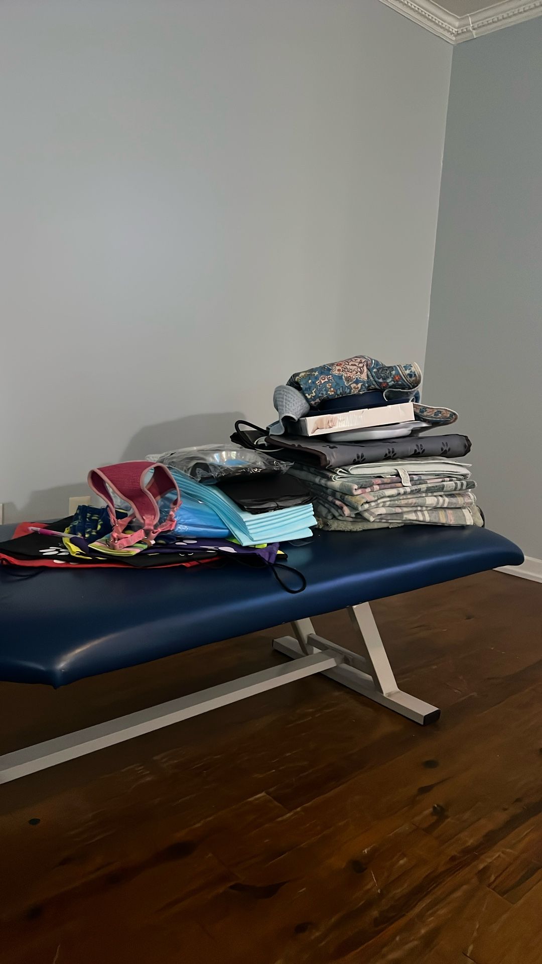 We have several washable pads, a scale, one years old, feeding dishes, never used disposable pet training pads, a couple harnesses, a large pet heating pad and some drawstring gift bags puppy collars
