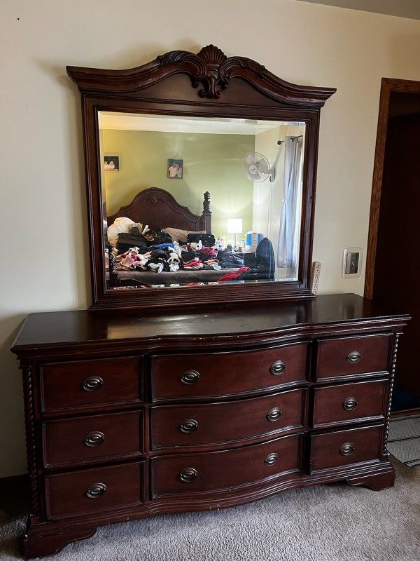 9 drawer dresser. 3ft tall and 5' 8in length. Mirror 4 ft tall and 3'10in length. $250 obo