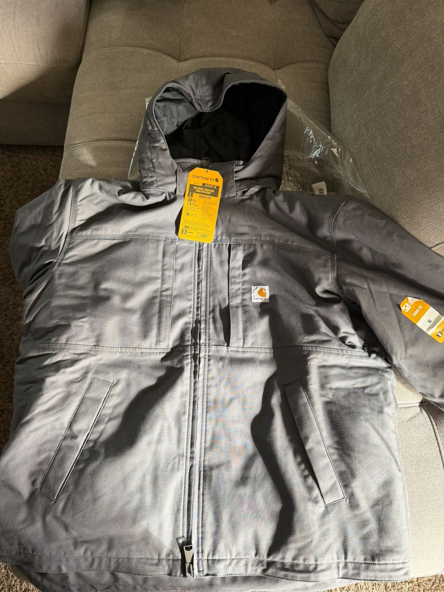 New Gray Carhartt Full Swing Insulated Jacket 3M Loose Fit XL Rain Defender.