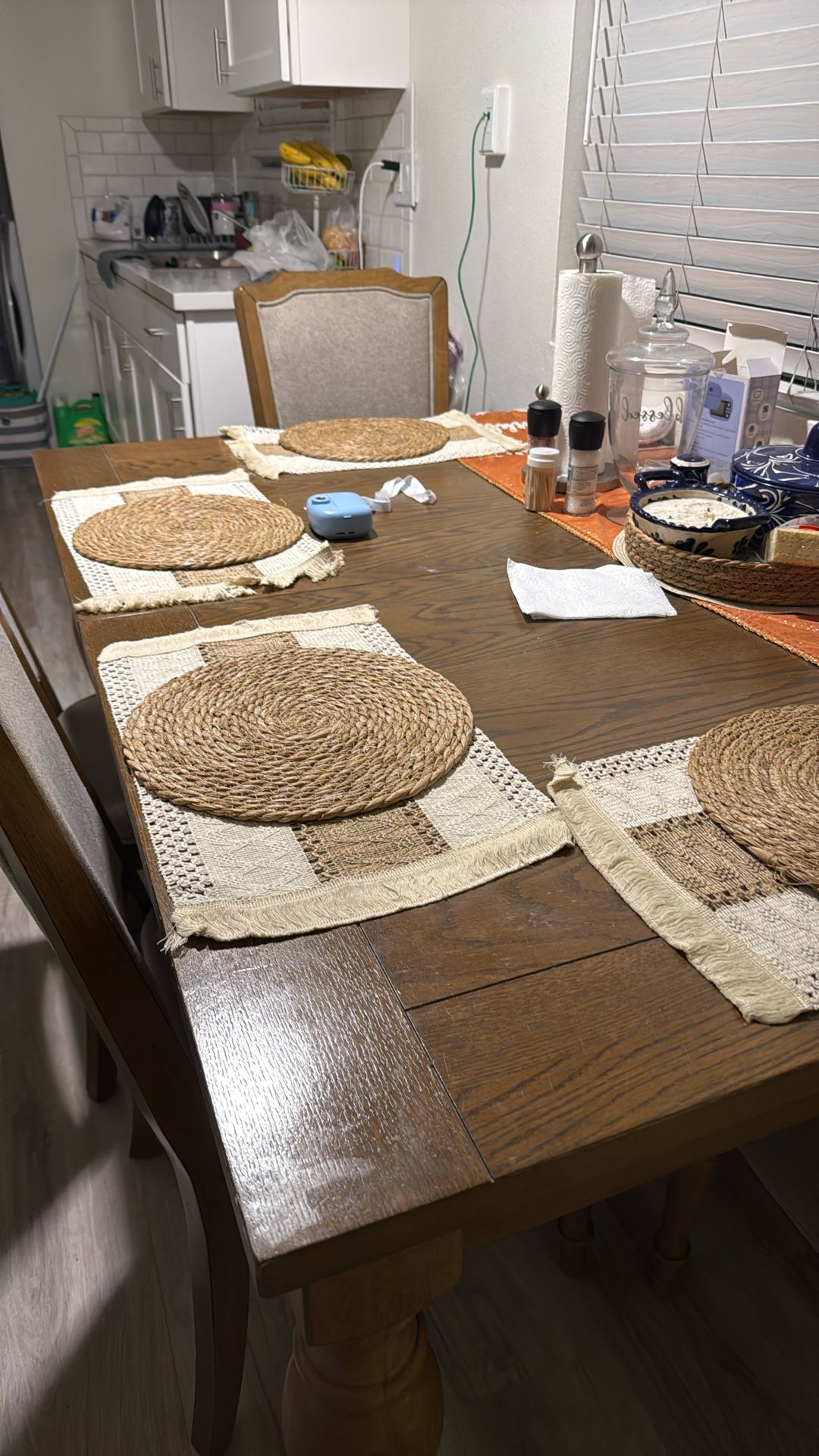 Beautiful wooden dinning table set , very well taken care of