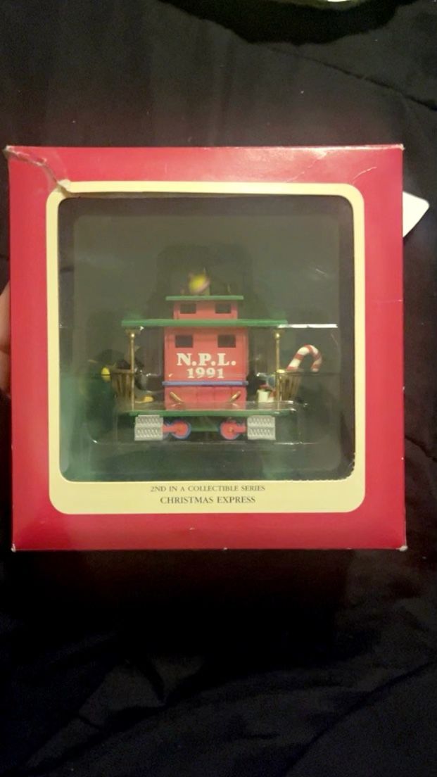 Hi I have a beautiful 1991 Caboose Christmas Express Train car vintage Carlton Cards ornament, 2nd in collectible series NPL North Pole Limited line brand new still in box asking $25 obo