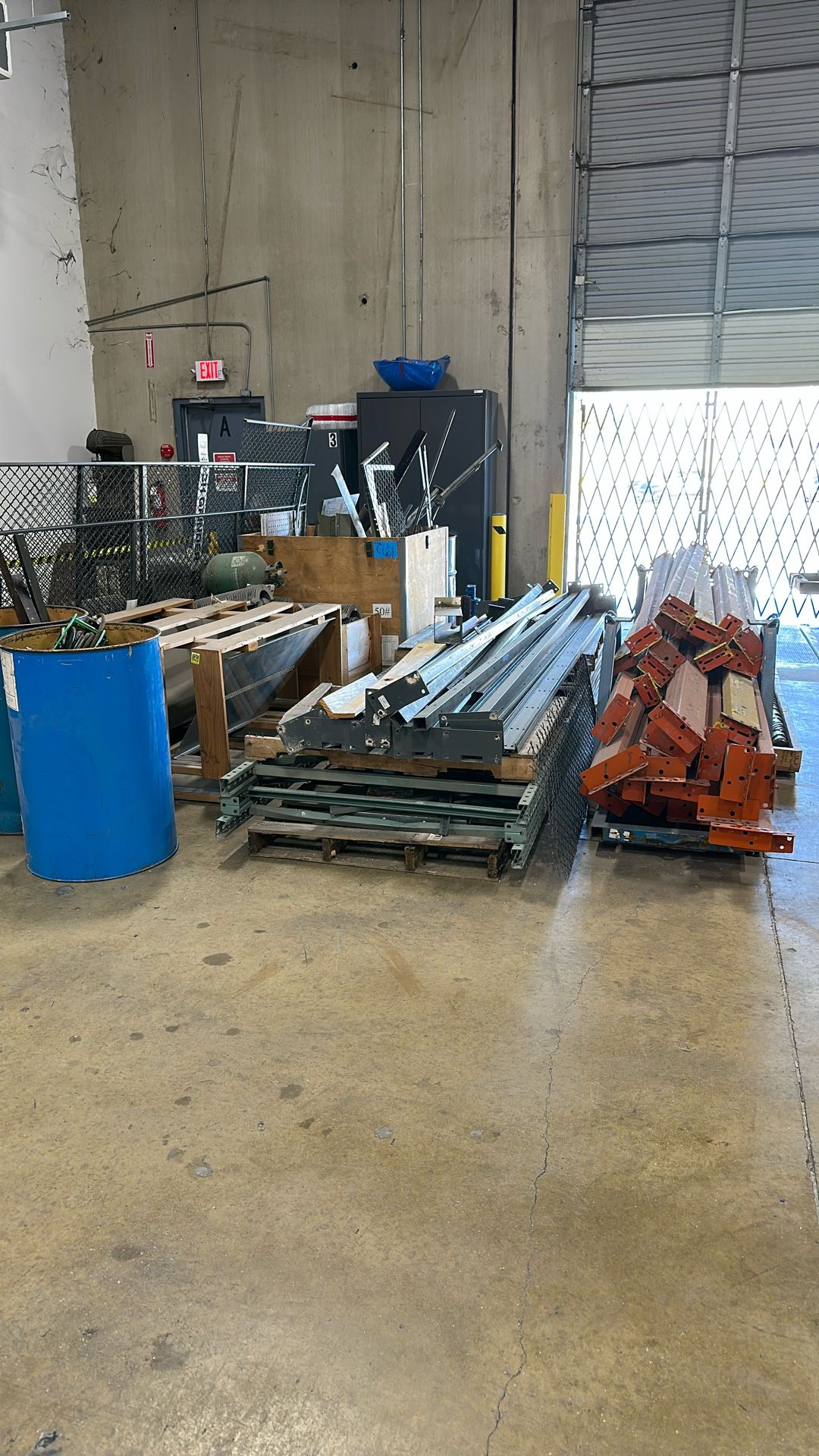 Just a bunch of scrap metal that I need to dispose of. Would like to get a little bit of cash to add to our lunch fund. There are several racks worth that can hold 2k lbs per section. I can help load as far as moving it to the dock door, but I cannot help load it onto your vehicle. We are only open Monday through Thursday and will not accept any visitors after 12 PM noon. You will need a utility trailer and at least four people to move all of this material. There is a couple hundred pounds of aluminum. A little bit of scrap copper wiring still with a jacket., and a bunch of normal carbon steel There are also a couple of large motors and some pieces of machinery there are three extruder screws that way about 250 pounds each there are also two extruder barrels that way about 550 pounds each that’s about a ton there in five pieces The rack and fencing material are separate from the scrap. These materials sell on Uline for about $1000 per section. Reply with your phone number and I will text you more pictures. $500 takes everything. Must load yourself. Bring help.