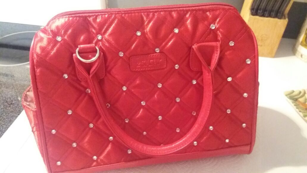Sachi red insulated lunch bag.Has strap to make it long.New never used.pick up only.Has two side pockets and one back zipper pocket.