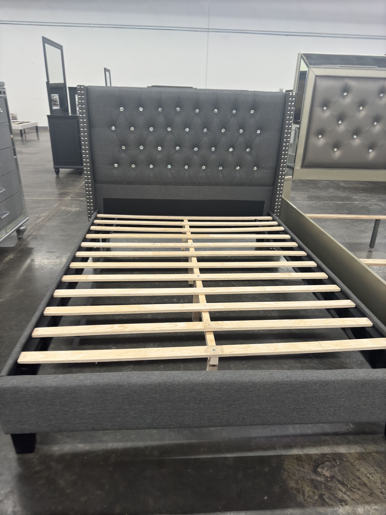 Queen Size Grey Tufted Bed W Ortho Mattress
