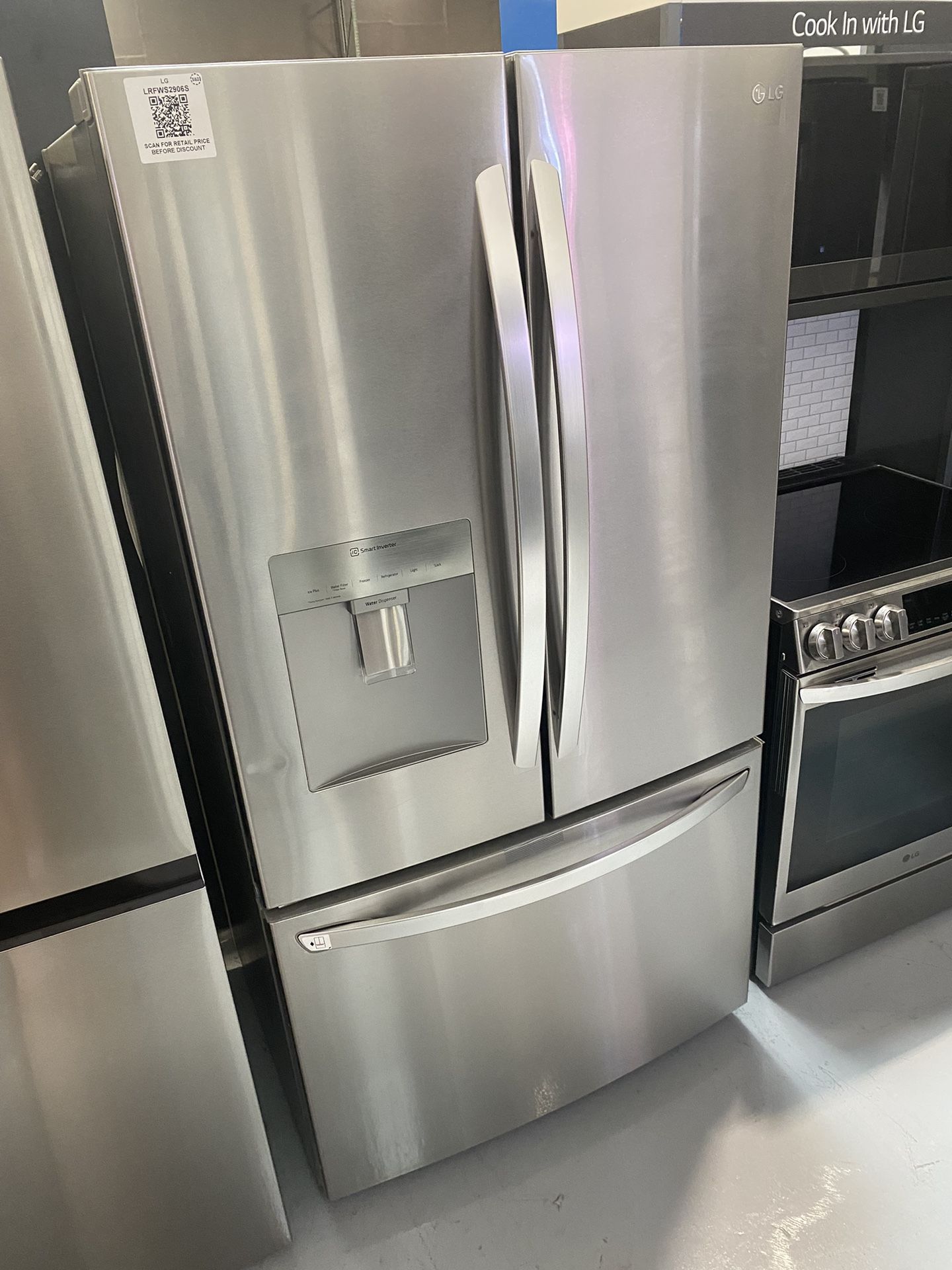 Open Box LG Stainless Steel 29 Cu. Ft. French Door Refrigerator Model #LRFWS2906S Dimensions: 35.75”W 36.25”D 69.75”H Slim External Water Dispenser Design. Half-Gallon Chiller Water Container. SmartPull Handle. Factory installed ice maker. Large capacity. Includes a 12-month warranty Financing Available Delivery and installation available Contact us with any questions or to stop by to see this unit and others. Open Monday - Saturday 10am - 6pm Our inventory changes daily. Message us for availability.