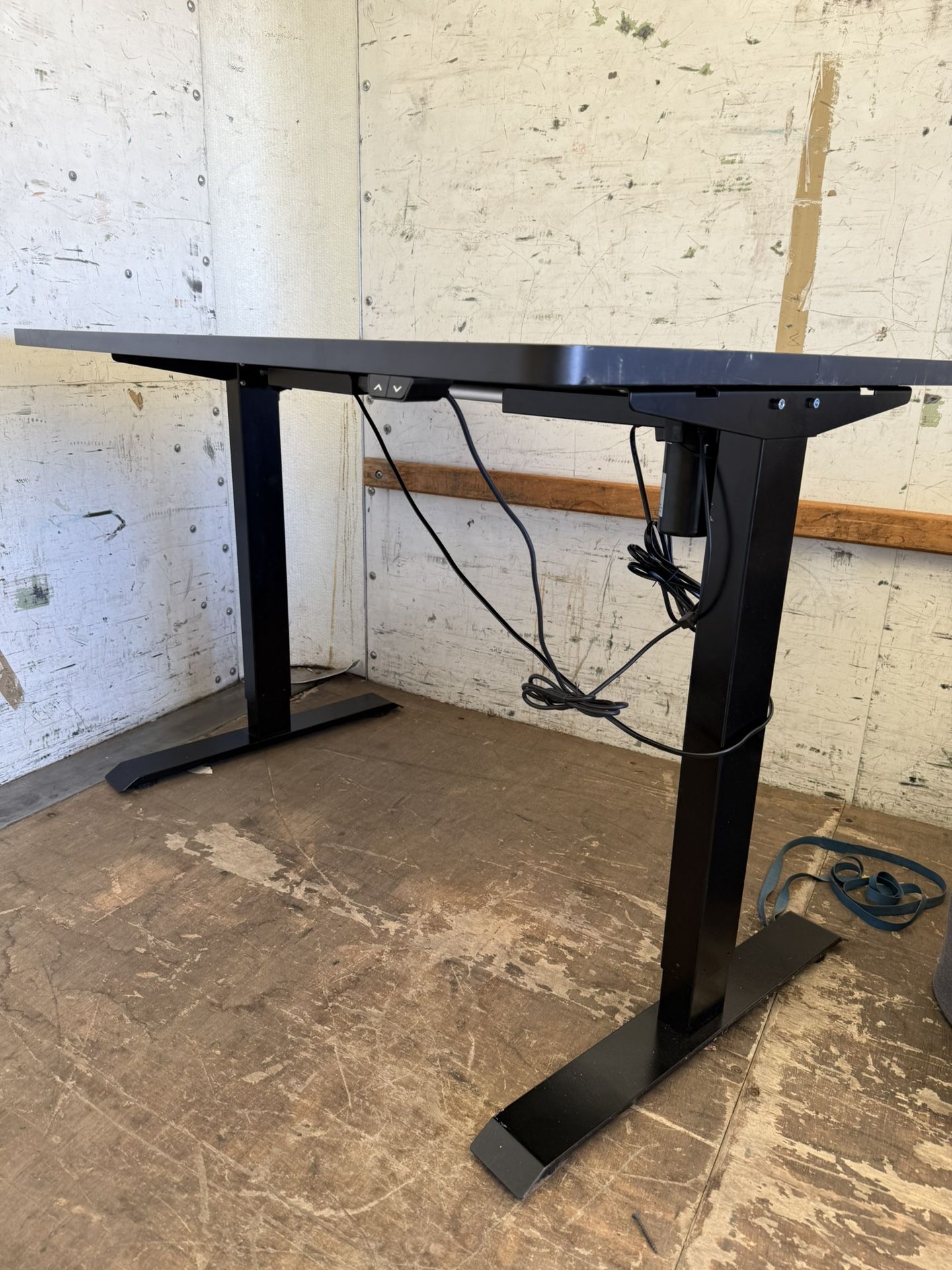 It’s in great condition. Pretty much new plugs in the wall raises up and down. Smoothly makes a great gaming or computer work desk.