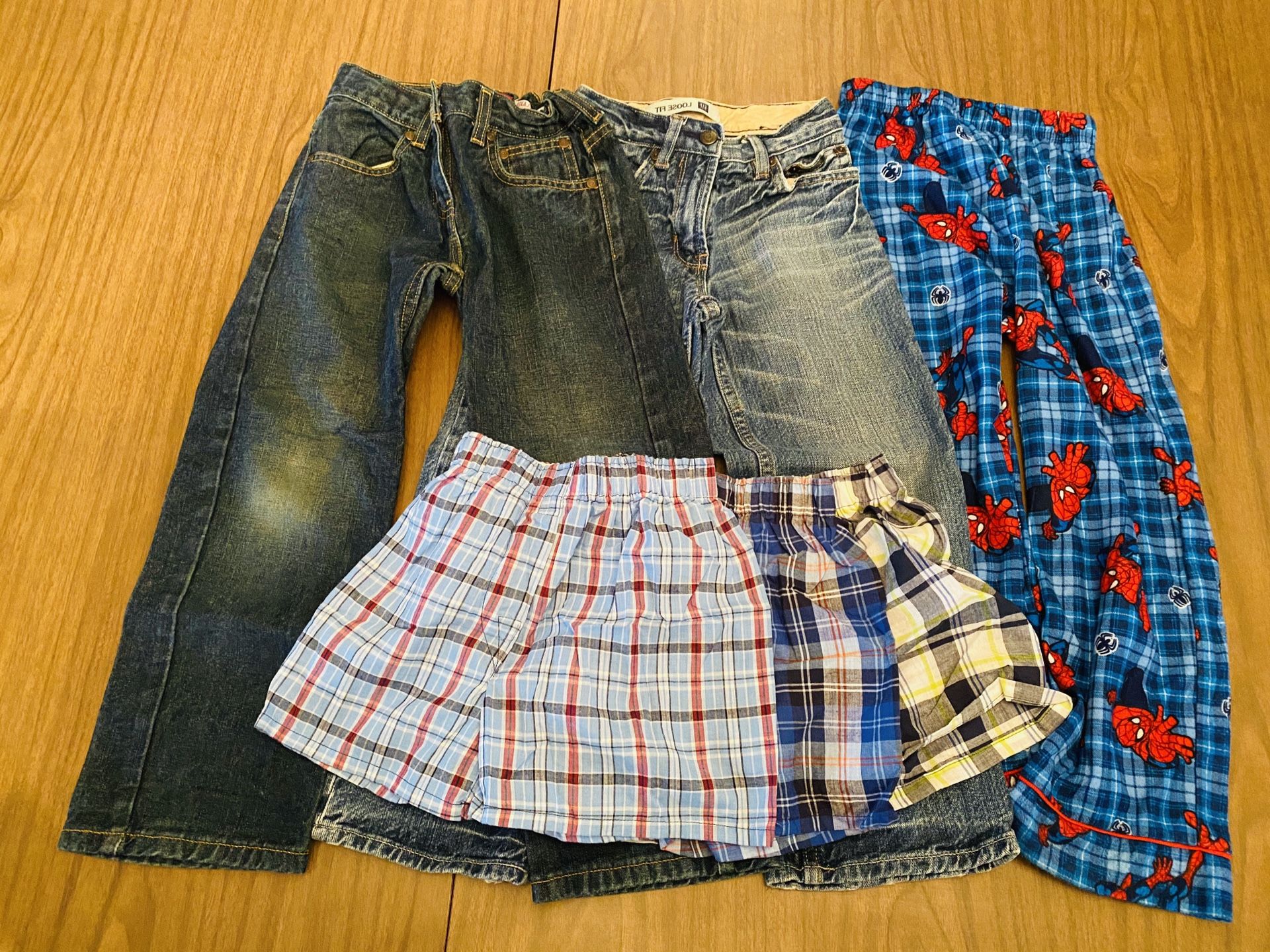 3 pair boxers 1 pair pajamas 2 pair jeans 3 shorts 3 shirts