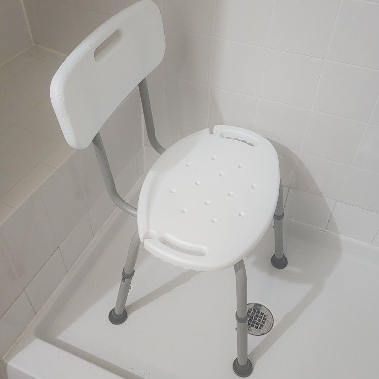 Assembled, comfortable shower seat. White & gray available (or both) Can easily disasaemble.