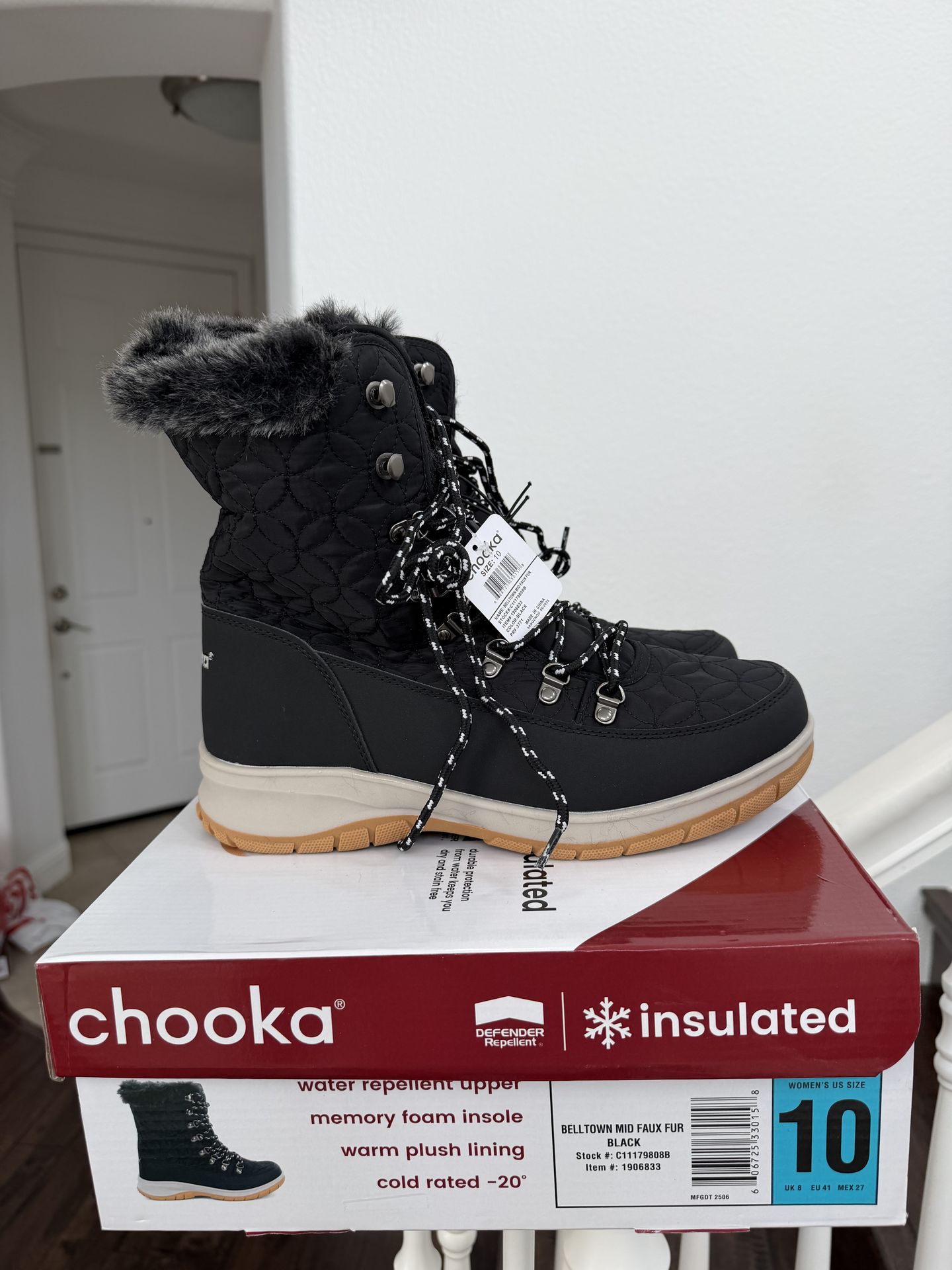 Brand new never worn with box and tags CHOOKA WOMEN’S WINTER BOOTS size 10 color Black. So cute and Very nice,comfortable BOOTS