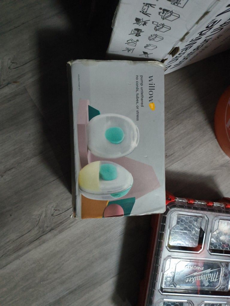 This is a Willow Go Wearable Double Electric Breast Pump kit. It is a hands-free, cord-free, in-bra pump designed for discreet and efficient milk expression. Hospital-grade suction: Offers up to -280mmHG for effective milk output. Hands-free design: Fits entirely in the bra with no external motors, tubes, or cords. High capacity: Comes with 5 oz reusable containers (10 oz total) with an option to upgrade to 7 oz containers. Easy to clean: Features simple assembly with dishwasher-safe parts. Smart features: Connects to the Willow app for session tracking and contro