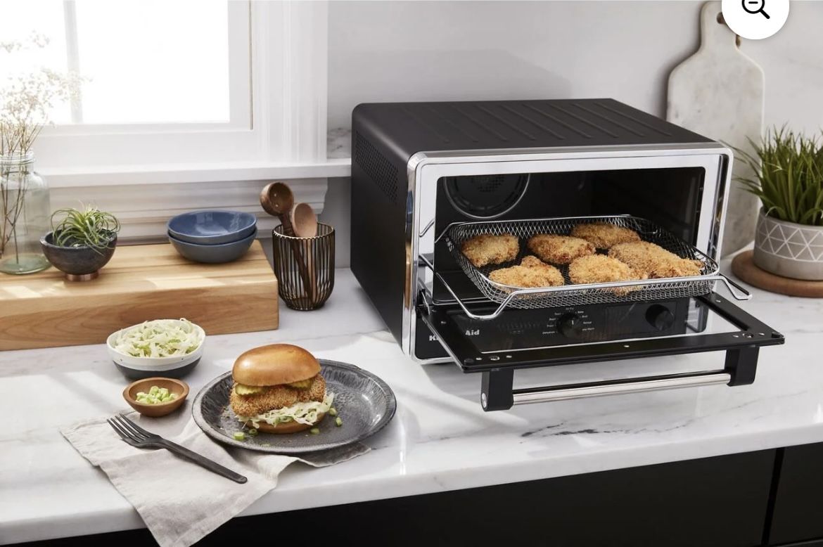 The KitchenAid Digital Countertop Oven with Air Fry was designed to offer endless healthy and fresh possibilities. With the No-Flip Air Fry Basket and 360° Air Fry System it's easy to make everything from French fries to delicate fish and so much more. It’s brand new Without box 📦 Never used