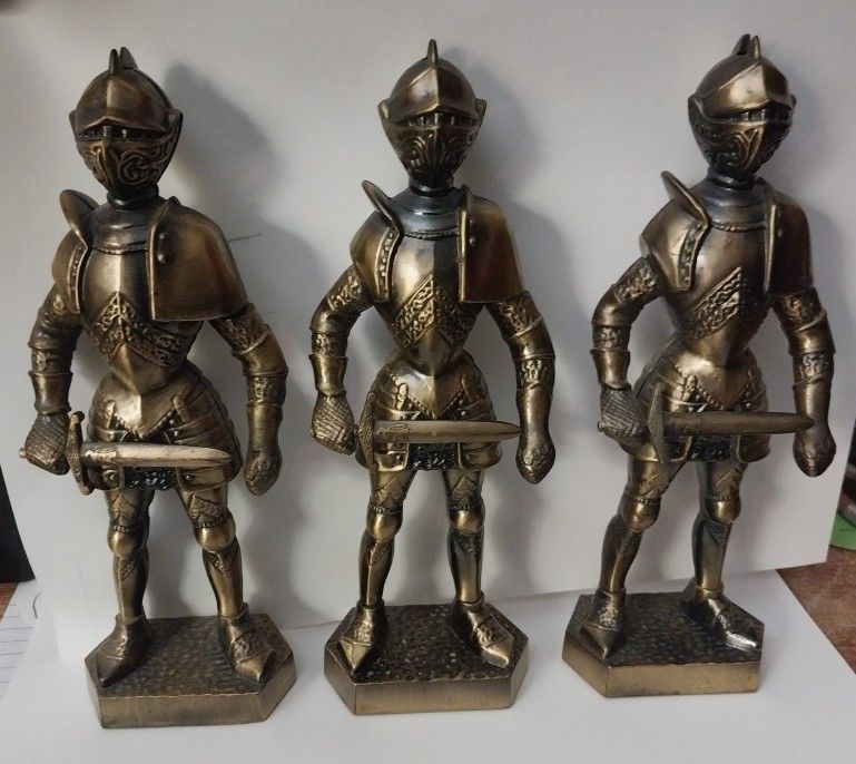 These are little knights in armor lighters Just under 8" tall I've had them for a while They used to work Refillable butane lighters 2 of them click when activated, but do not light. 1 has an arm that should spark the lighter, but it's not working, no clicking, just loose SOLD AS A SET I will not split them up Need to buy all 3 as is. 20.00