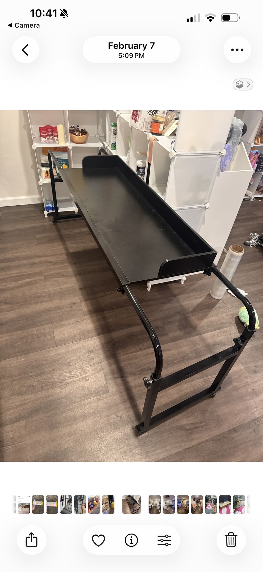 This is a table/desk that extends wider than the table top so that it can fit over a bed. I have two of these one that is assembled and one that is still in the box. I’m selling the one in the box for $40 If you purchase, you can have the one that is assembled for free