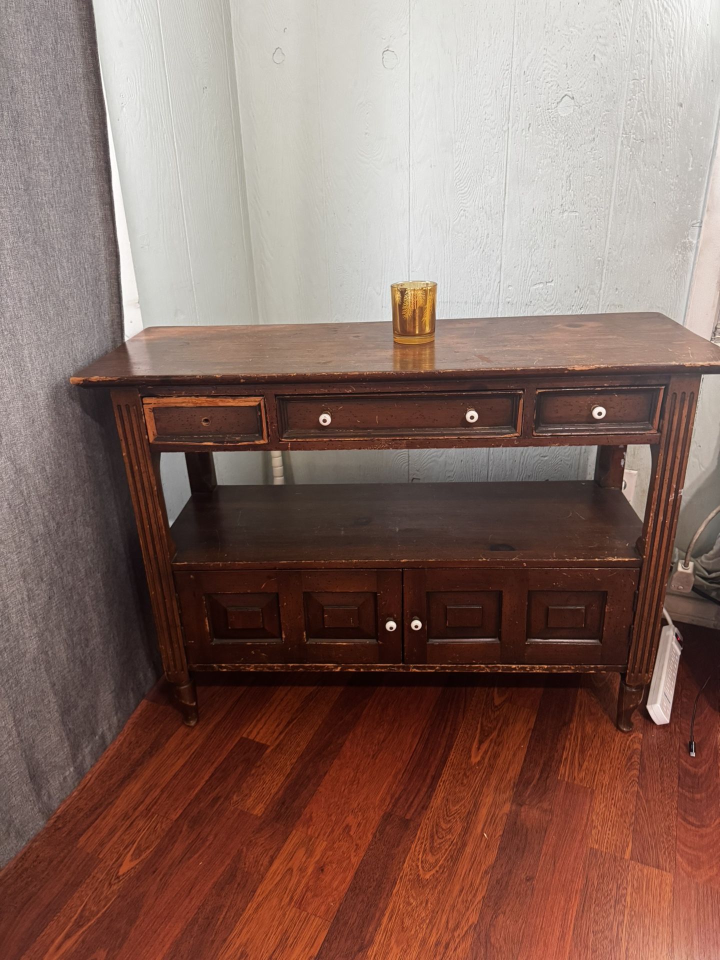Pine Vintage Dresser Condition as seen on video, price negotiable Could be great for someone who wants to refurbish vintage furniture. Color: Dark brown Width: 14 inches Length: 38 1/2 inches Height: 28 inches