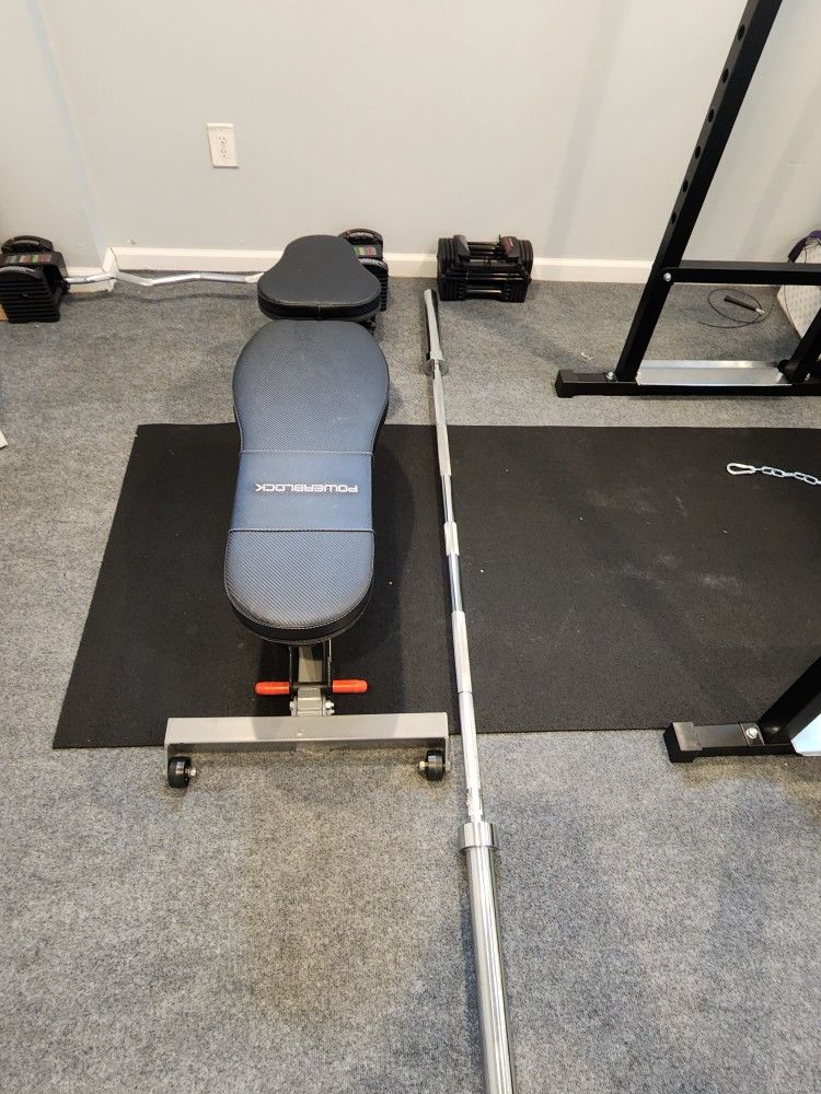 Powerblock Pro dumbells Powerblock bench Powerblock curl bar Olypic Bar with 300lbs in weight plates Marcy home gym Some resistance bands, attachments