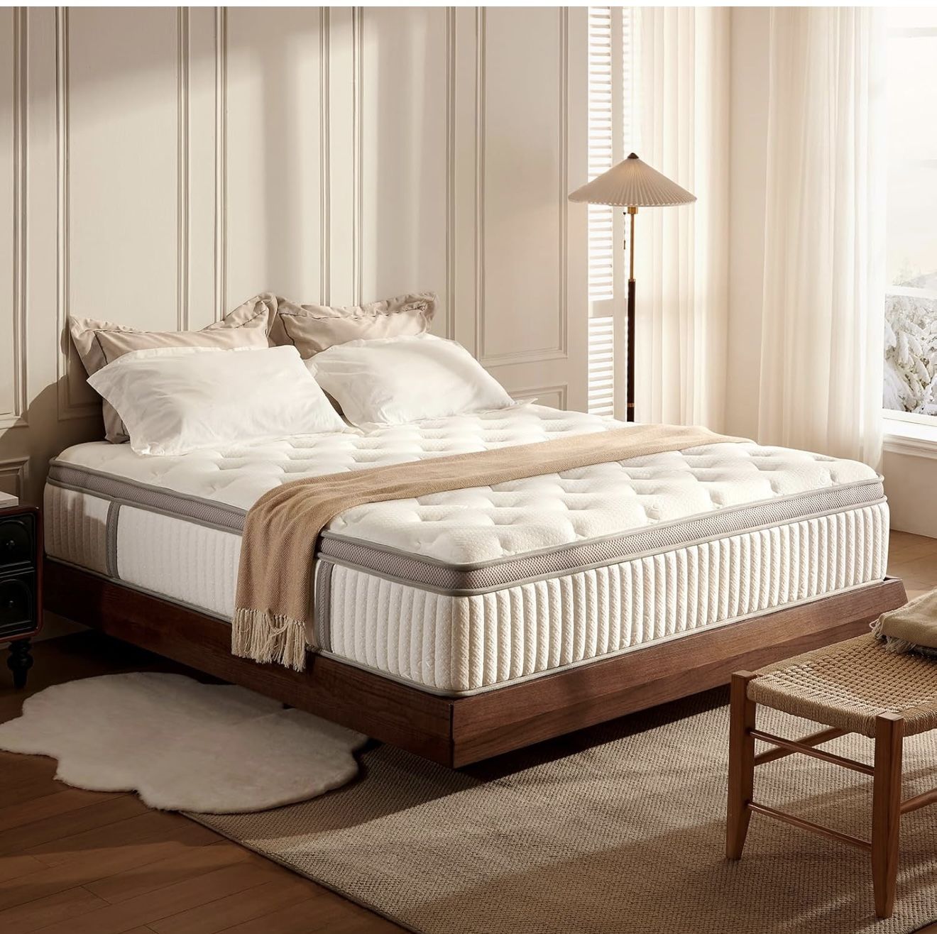 10”King Size Mattress, Hybrid Mattress in A Box, Memory Foam & Individually Pocket Spring for Pain Relief, Medium Firm King Mattresses