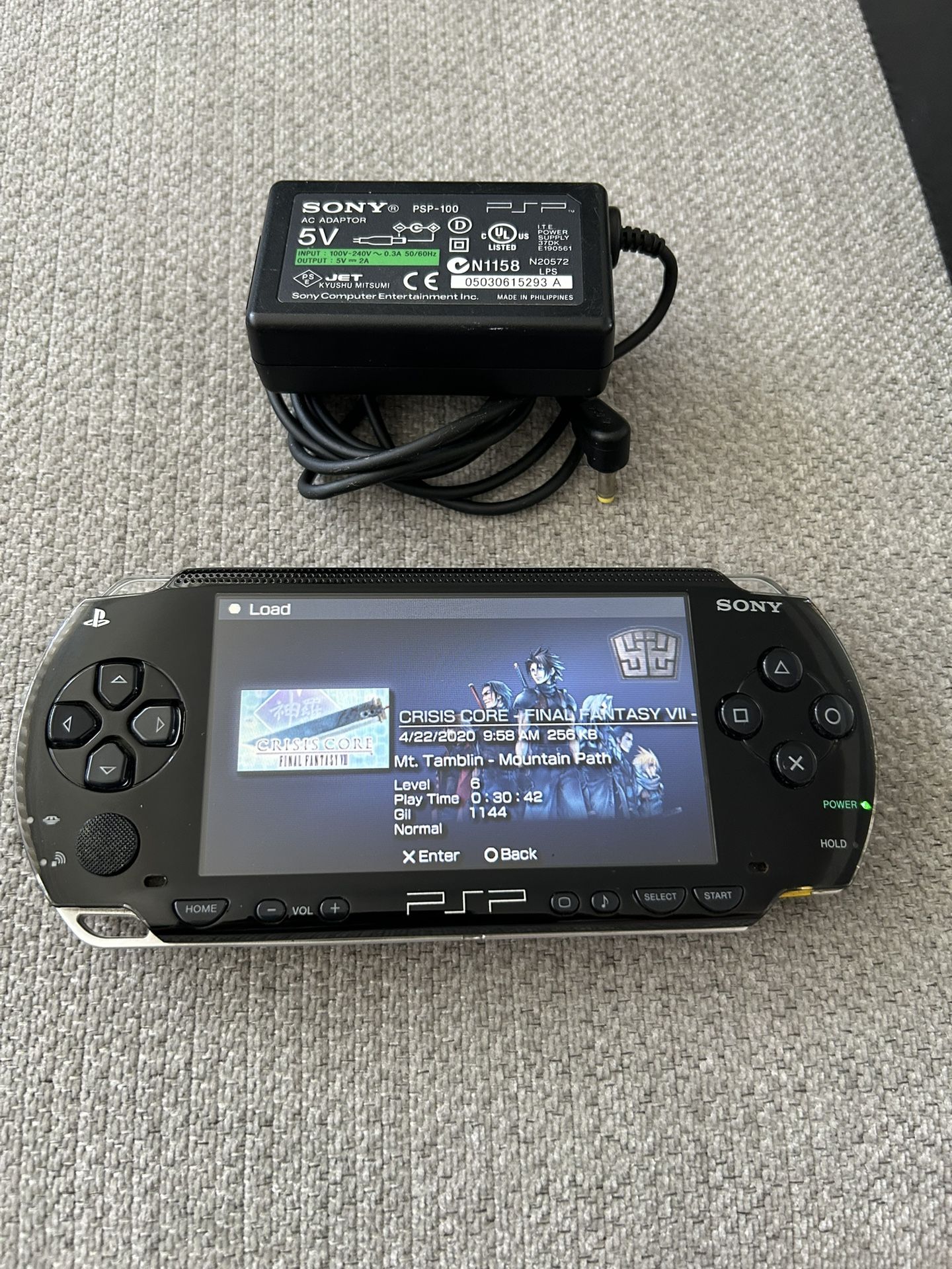 Great condition PSP model 1001. Speakers and buttons all work. Display is uncracked and unscratched but there are two pinpoint black spots on the bottom middle and left middle of the screen, hard to see unless it’s a white/light screen. Includes 8GB Sony Memory stick, original padded PSP case, and original working DC adapter. You are welcome to fully test it out before buying