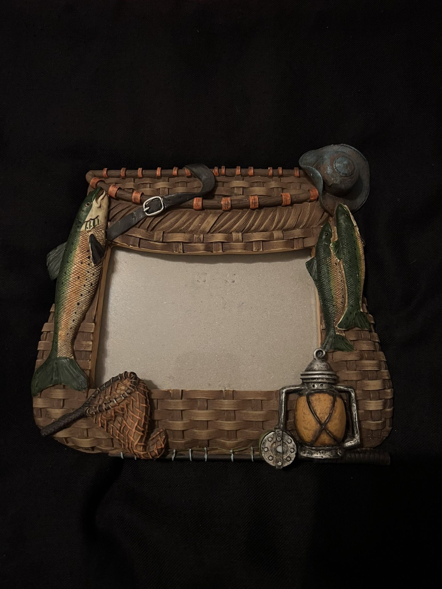 Frontier adventures fishing themed picture frame. Holds a 4 x 6 photo.
