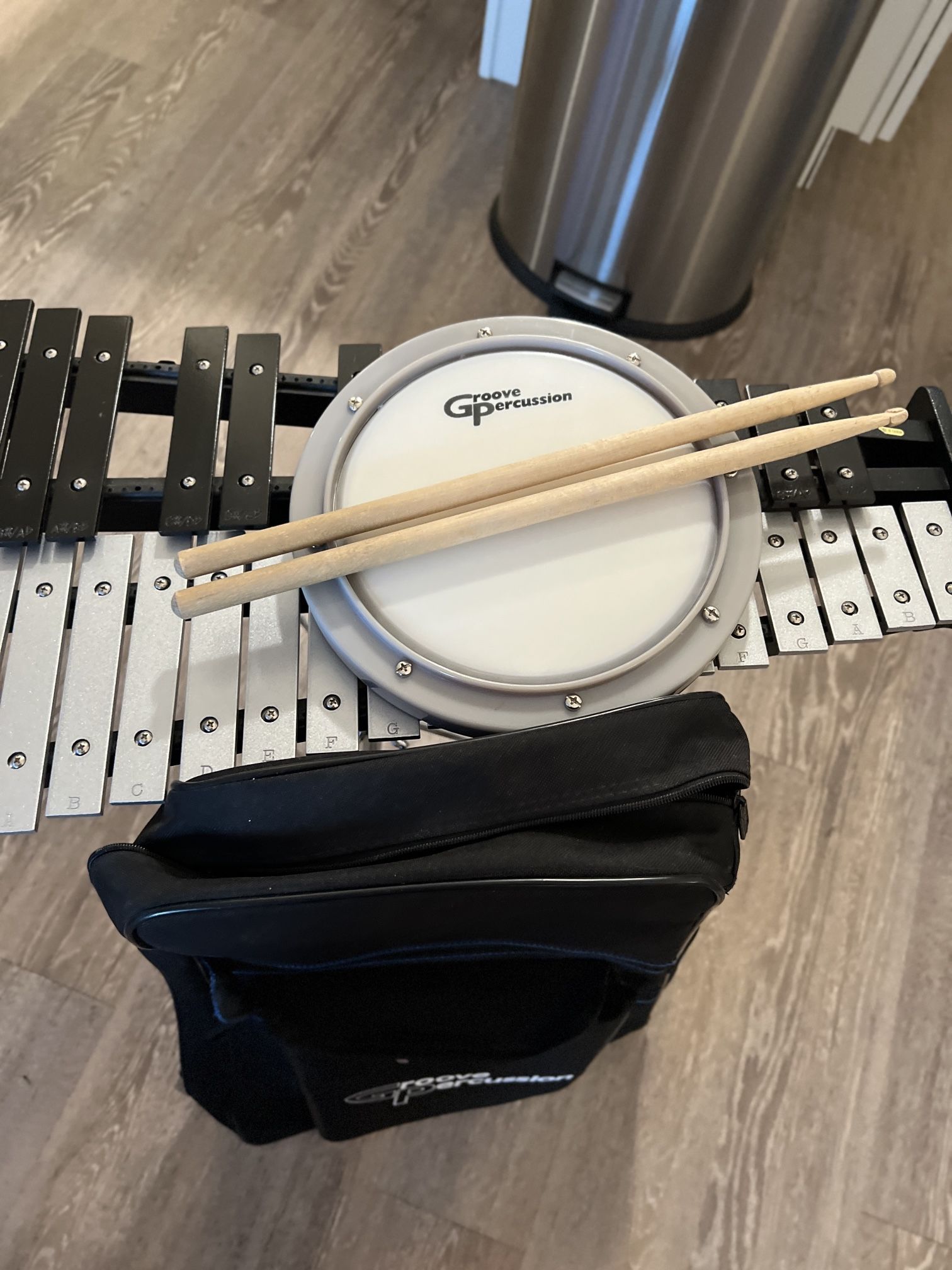 In pristine condition. Comes with the groove percusion case and a practice pad and the sticks.