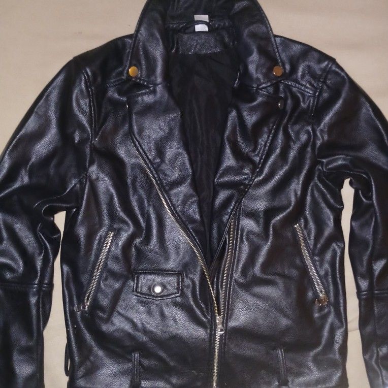 Beautiful motorcycle looking like jacket for women. Has chrome buttons and rippers and solid black leather with chrome accessories. Wish this jacket fit me It looks so cool I love this jacket so much, do I'm sure then next girl owner is gonna love this jacket.