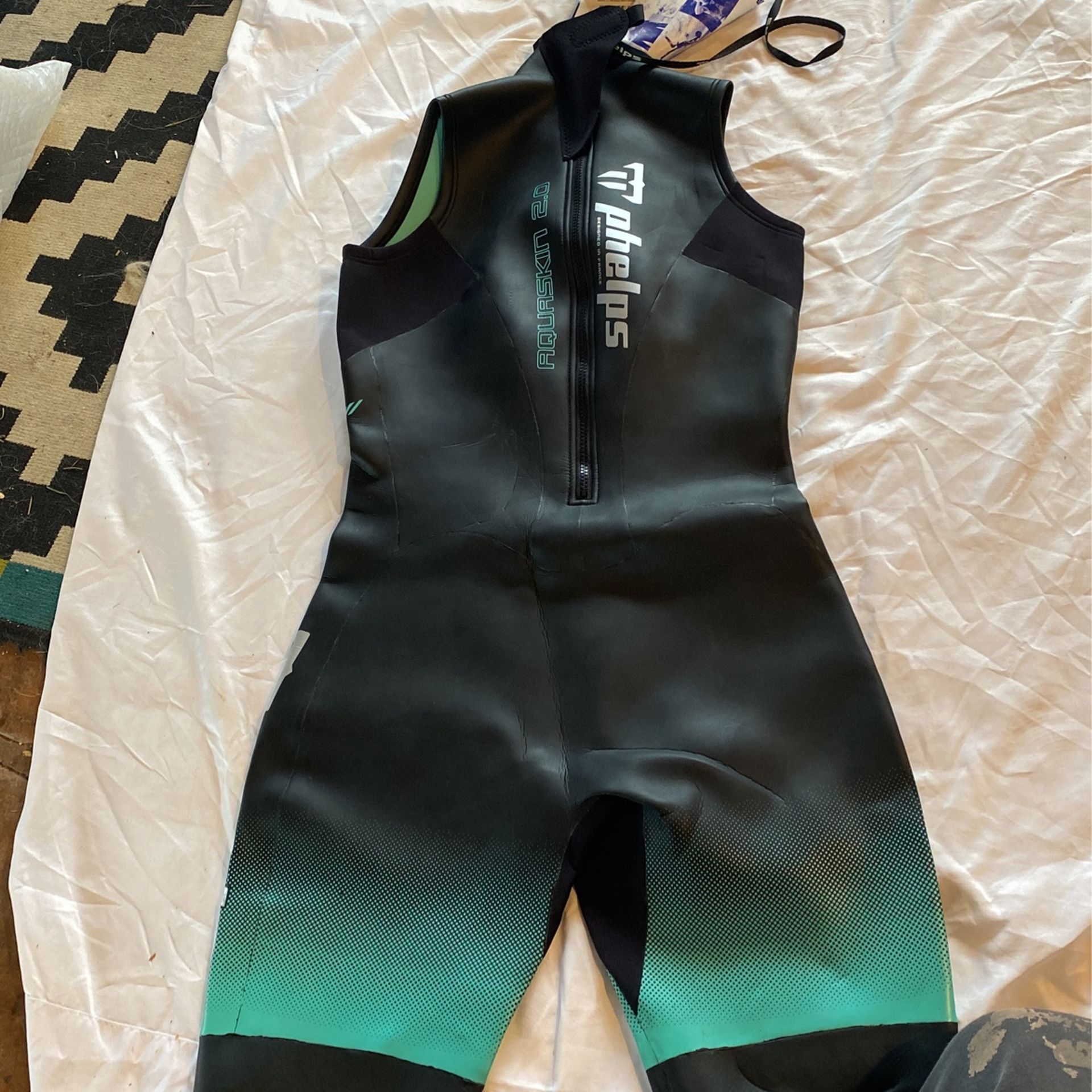 Designed to take the chill out of your swim, the Aqua Skin Full suit for women uses super stretch, 1.5mm Glideskin neoprene to increase speed and freedom of movement in the water by reducing friction. Thermo-Guard technology provides warmth and UV protection. $60 brand new never in water