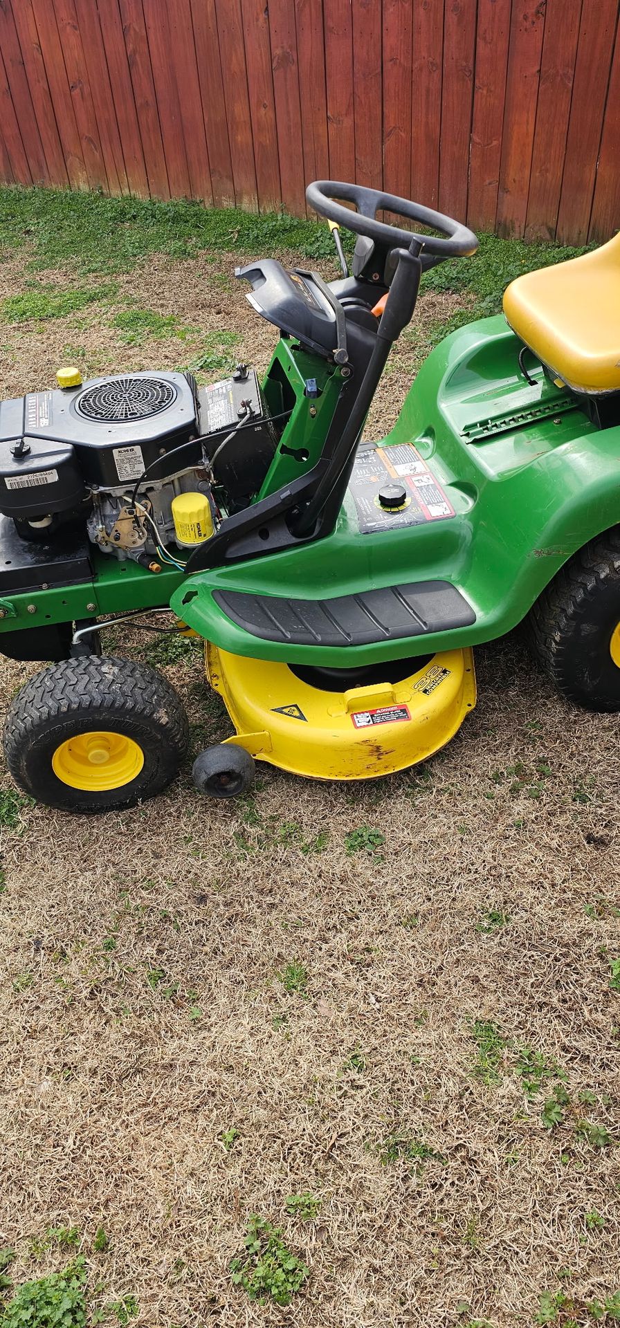 John Deere LT155 15.5hp 38" deck. Runs great! Does not have a hood. Asking $550.00/obo